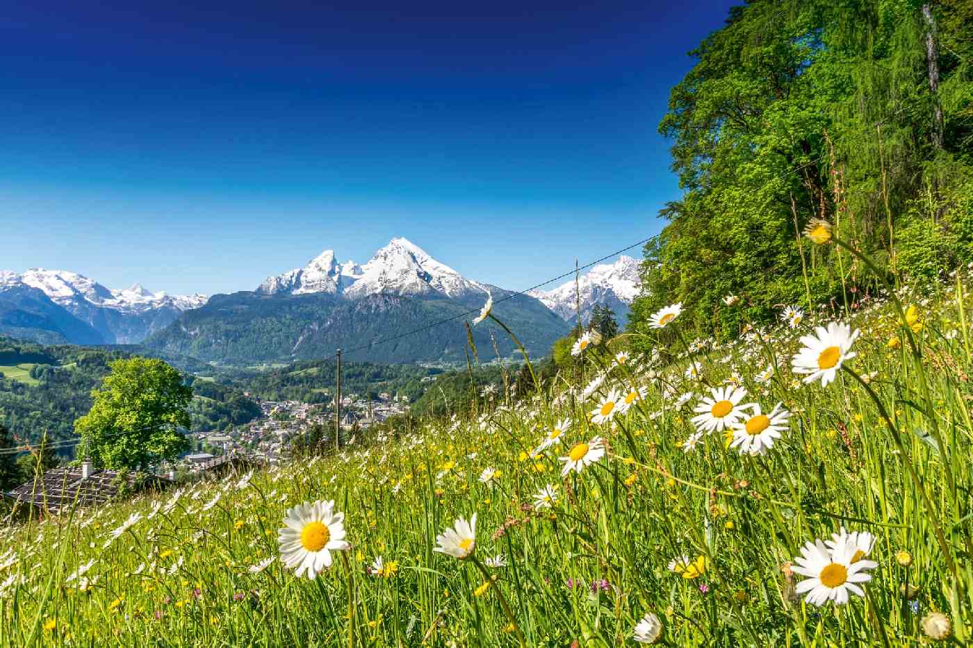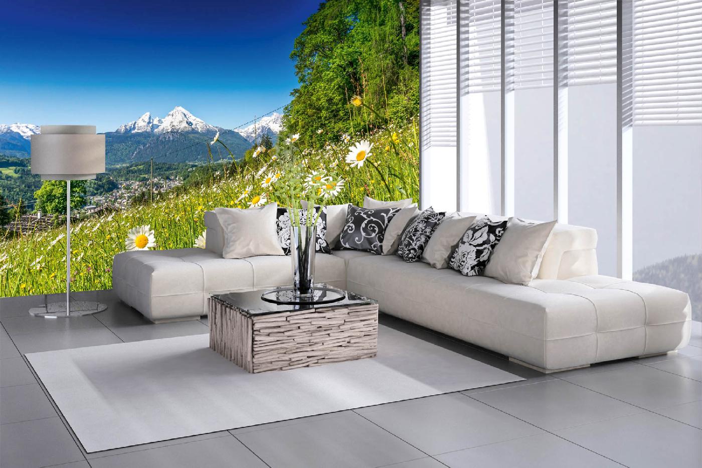 Vlies Fototapete - Alpine Landschaft 375 x 250 cm
