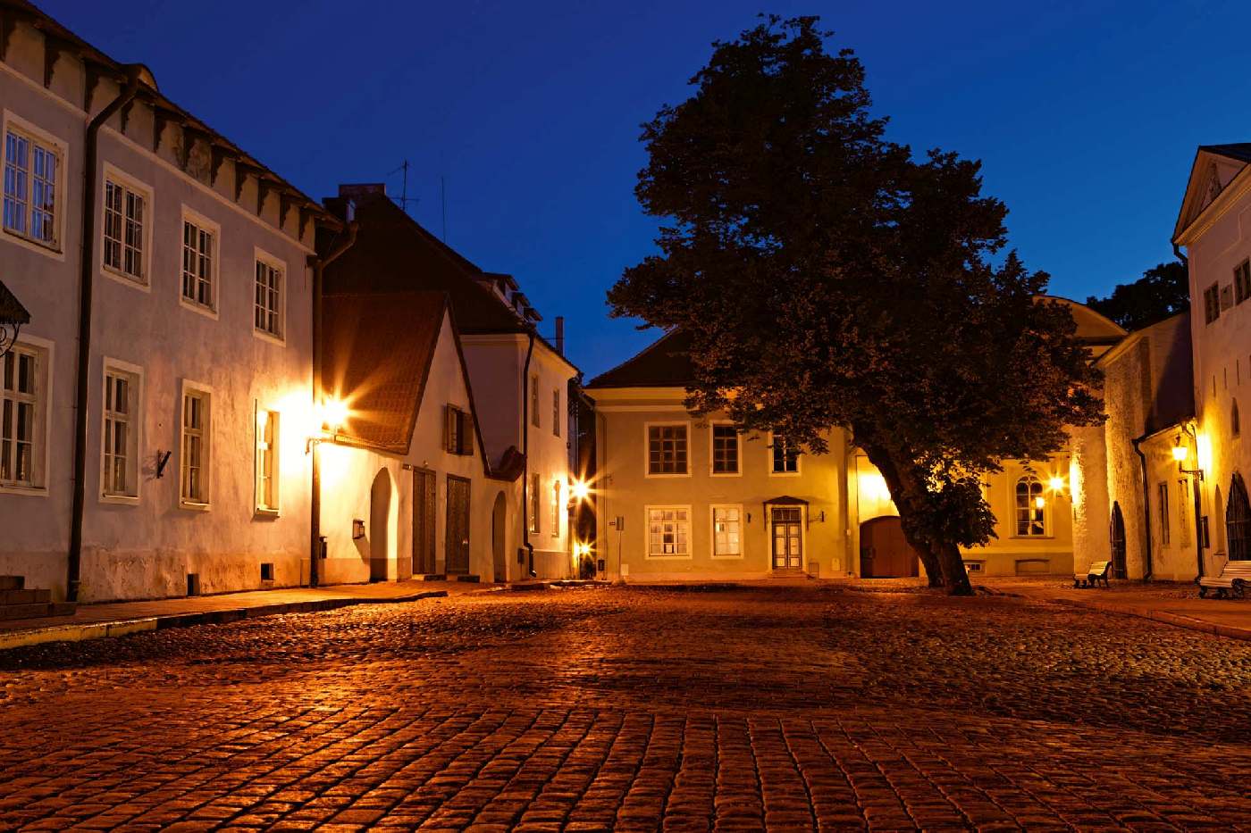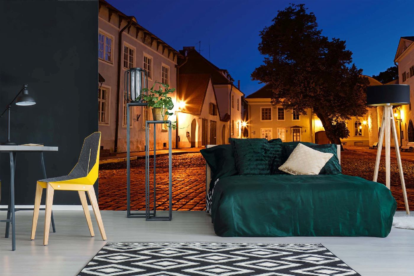 Vlies Fototapete - Alte Straße in der Nacht 375 x 250 cm