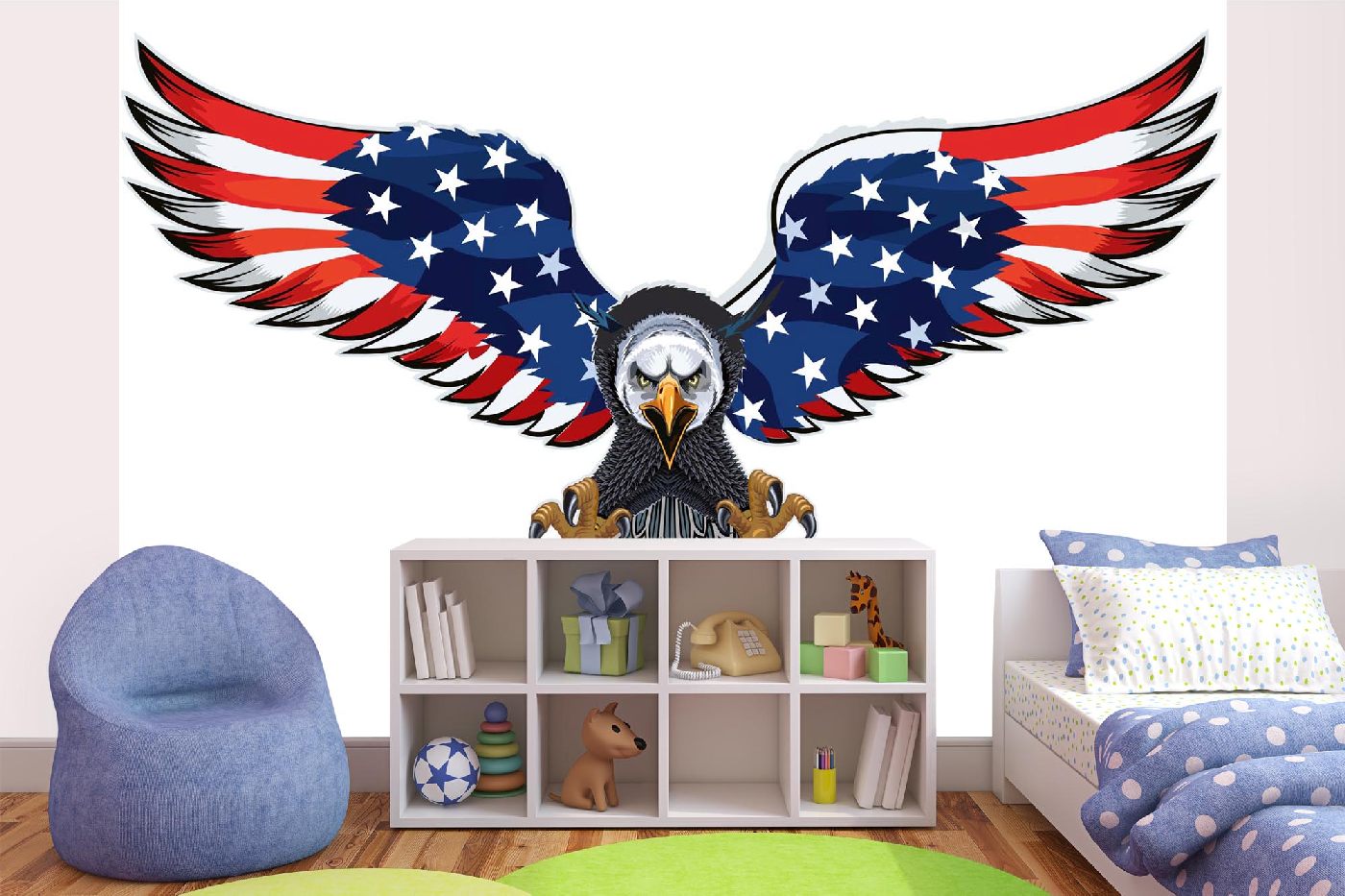 Vlies Fototapete - Amerikanischer Adler mit Flagge 375 x 250 cm