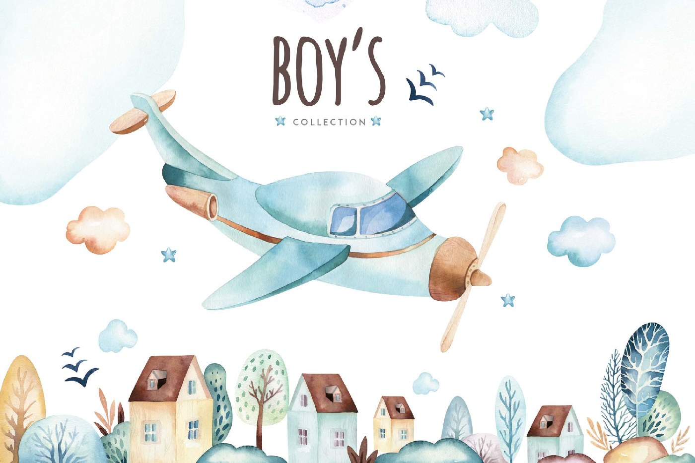 Vlies Fototapete - Aquarell Flugzeug 375 x 250 cm