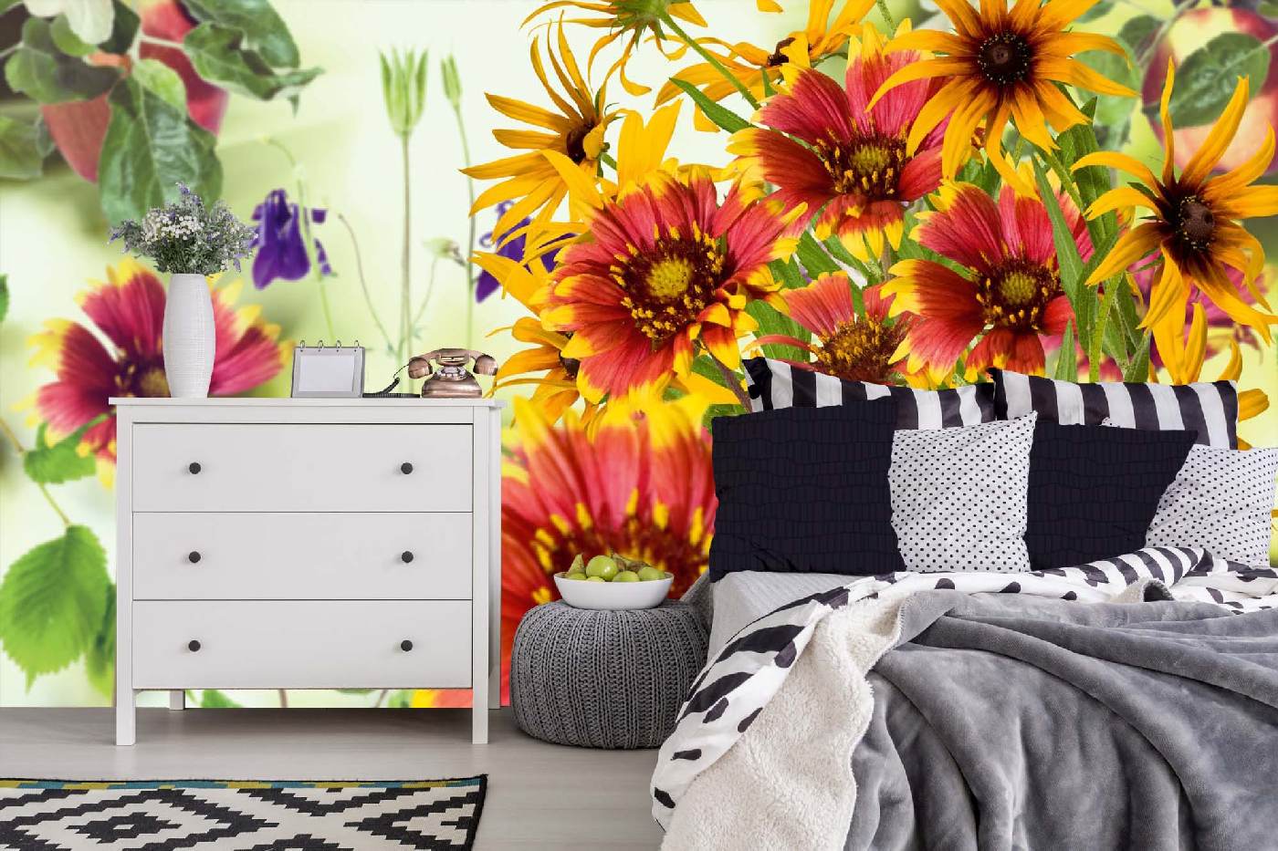 Vlies Fototapete - Blumen im Garten 375 x 250 cm