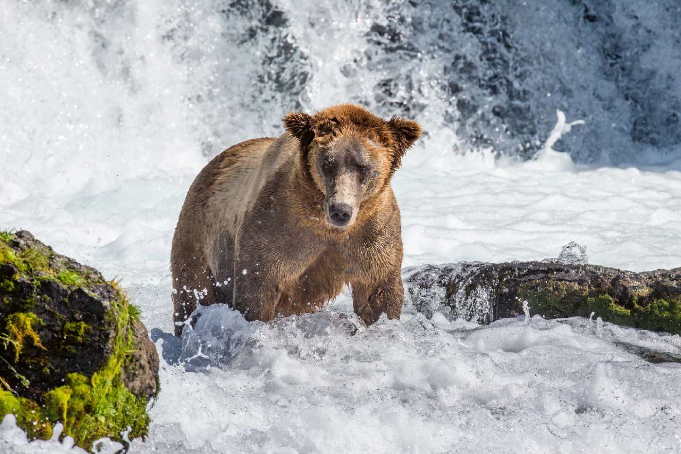 Vlies Fototapete - Braunbär in Stromschnellen 375 x 250 cm