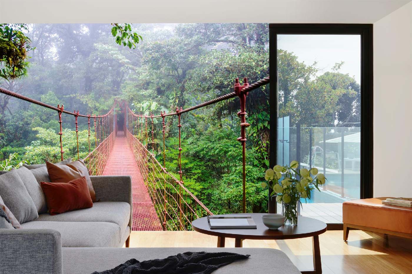 Vlies Fototapete - Brücke im Regenwald 375 x 250 cm
