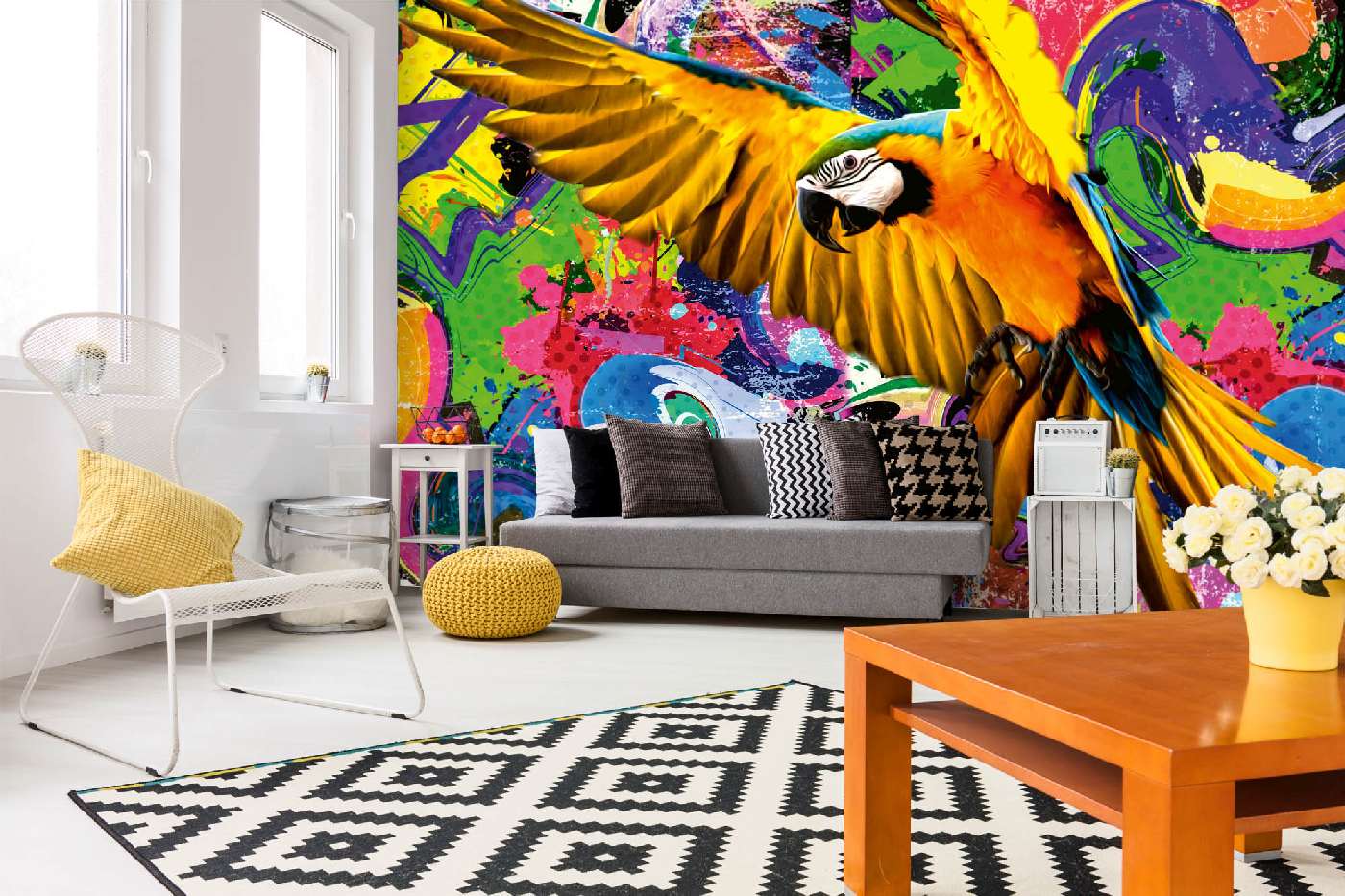 Vlies Fototapete - Buntfarbiger Papagei 375 x 250 cm