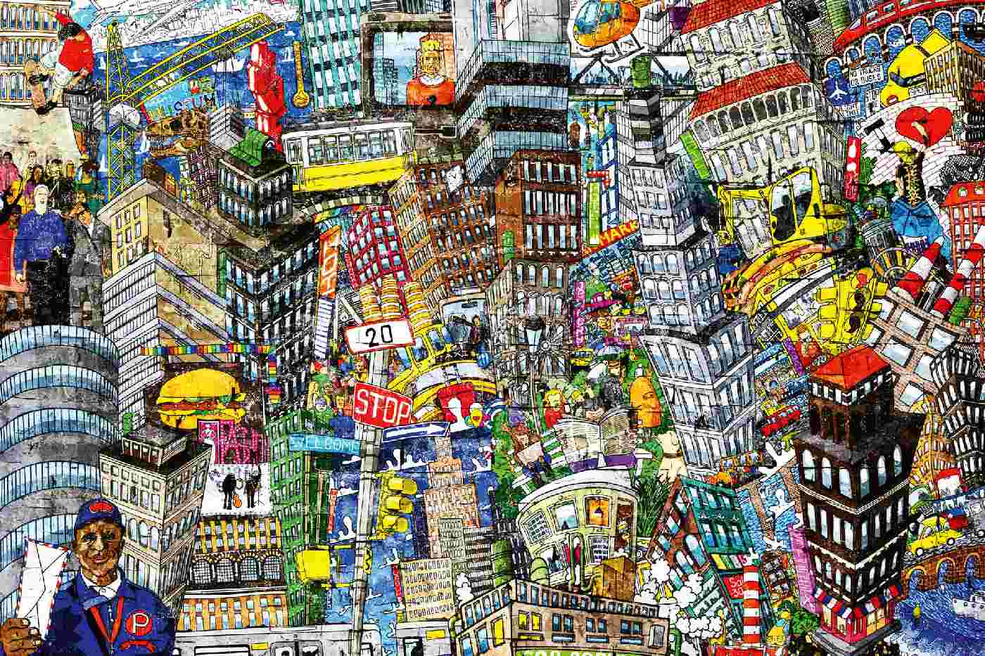 Vlies Fototapete - Cartoon Stadt 375 x 250 cm