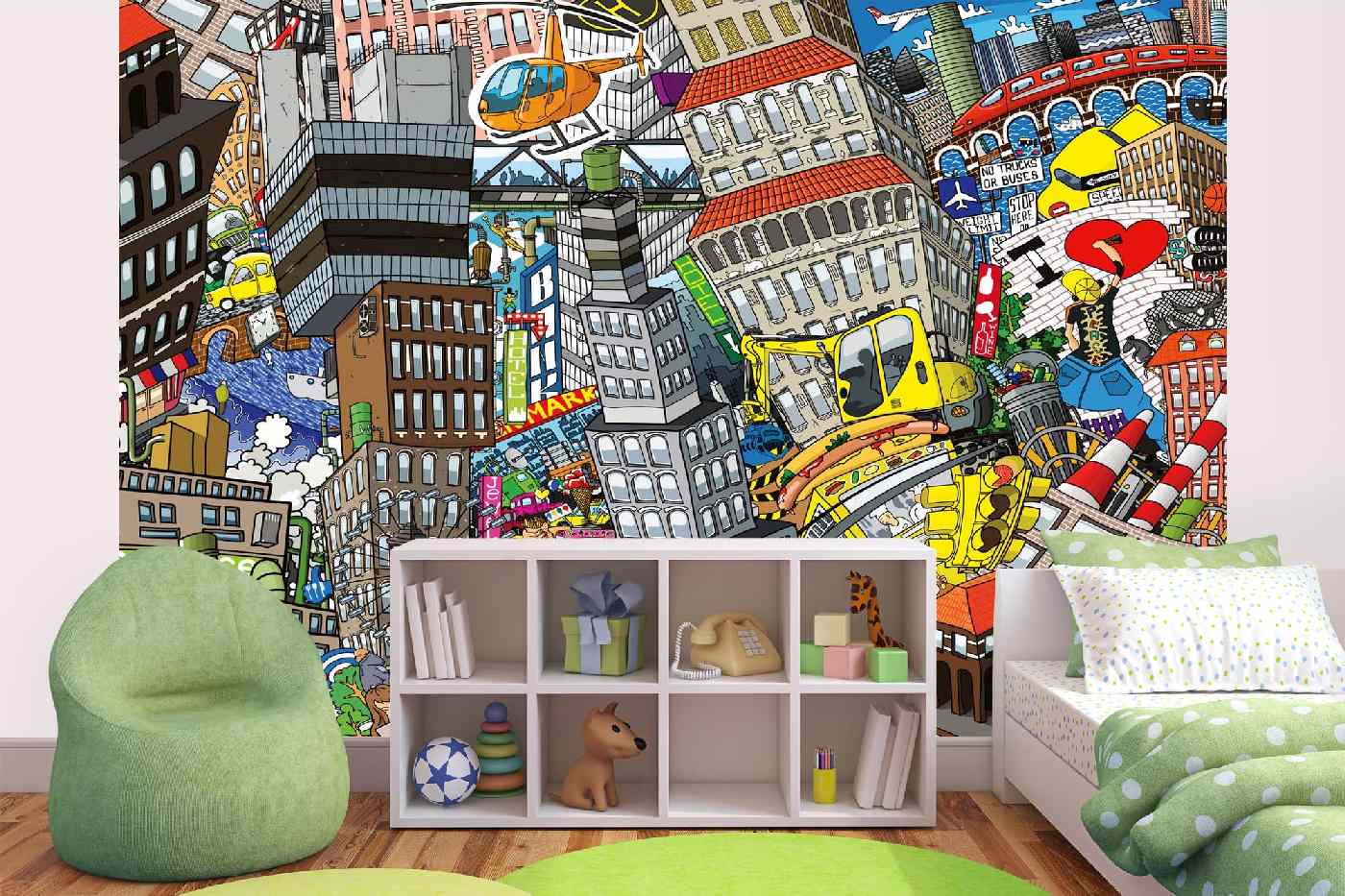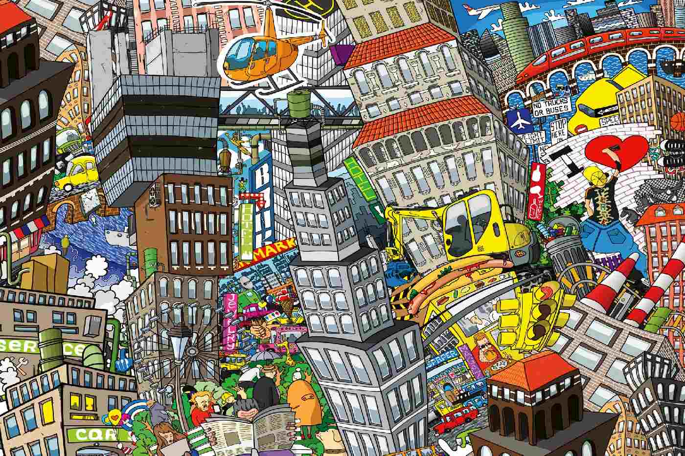 Vlies Fototapete - Cartoon Stadt Zoom 375 x 250 cm