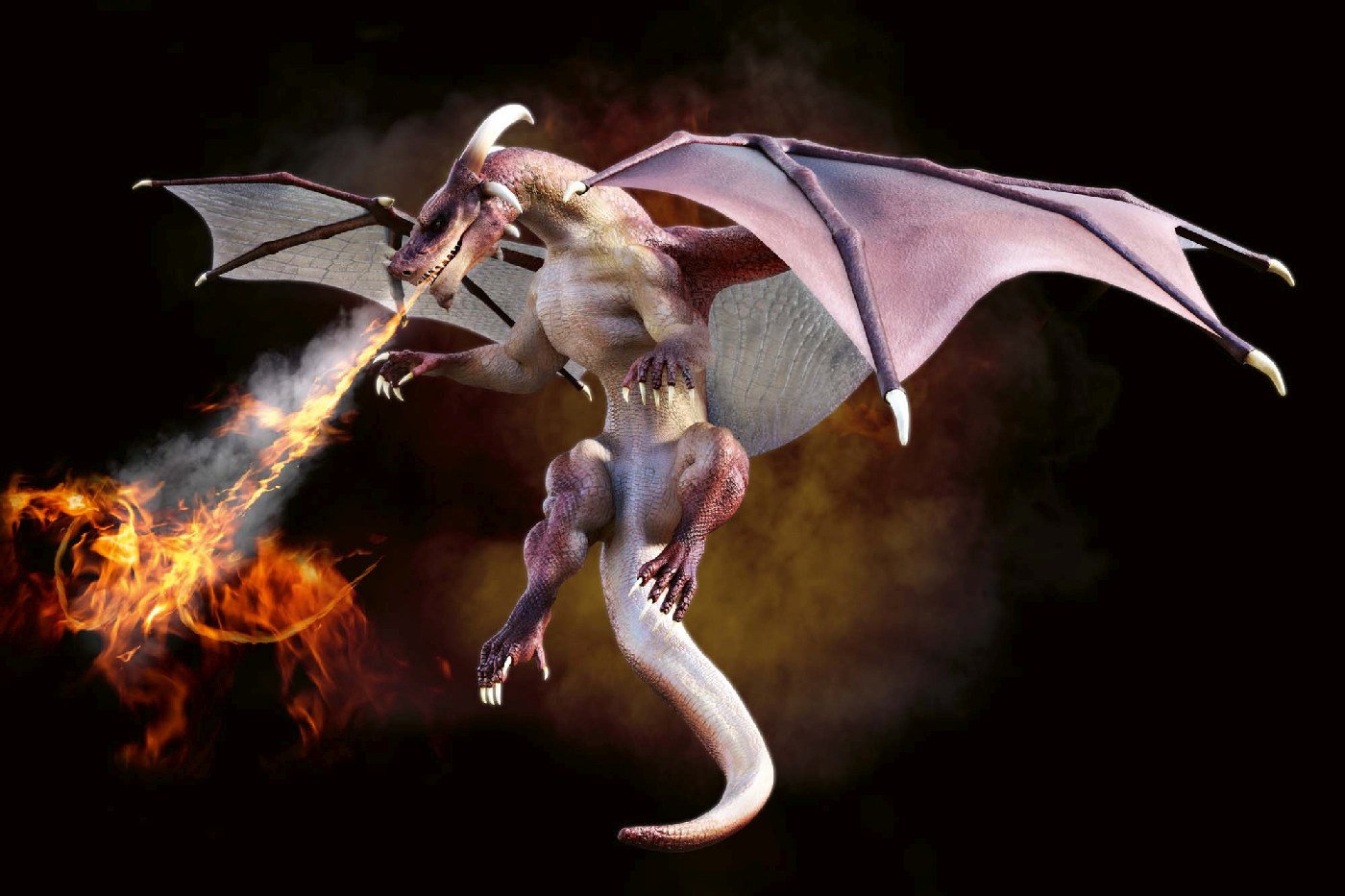 Vlies Fototapete - Drache bläst Feuer 375 x 250 cm