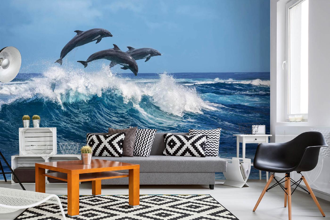Vlies Fototapete - Drei schöne Delfine 375 x 250 cm