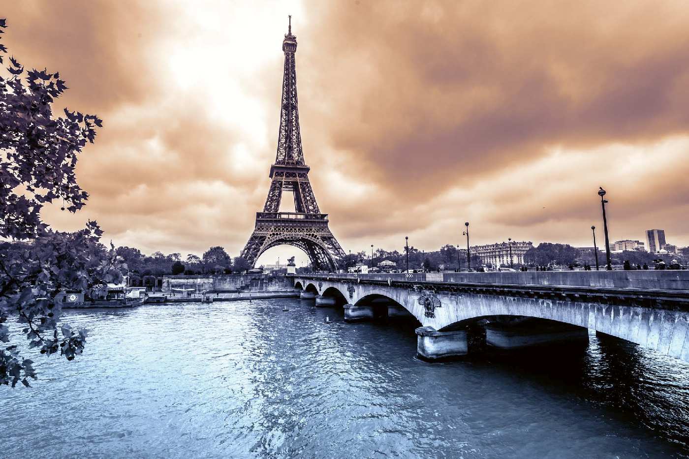 Vlies Fototapete - Eiffelturm im Regen 375 x 250 cm