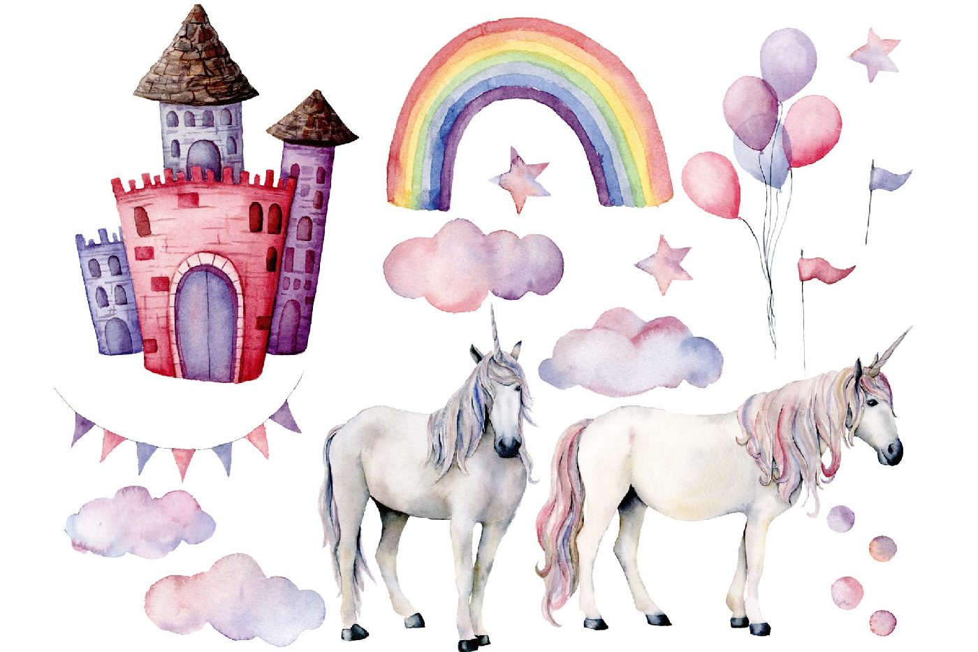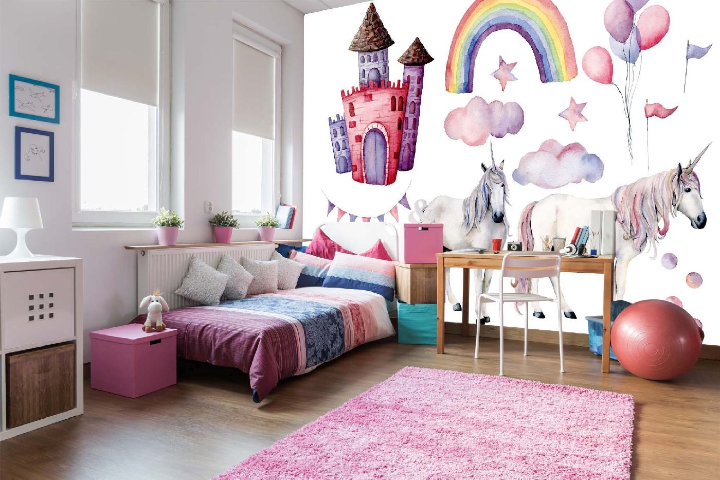 Vlies Fototapete - Einhörner und Regenbogen 375 x 250 cm