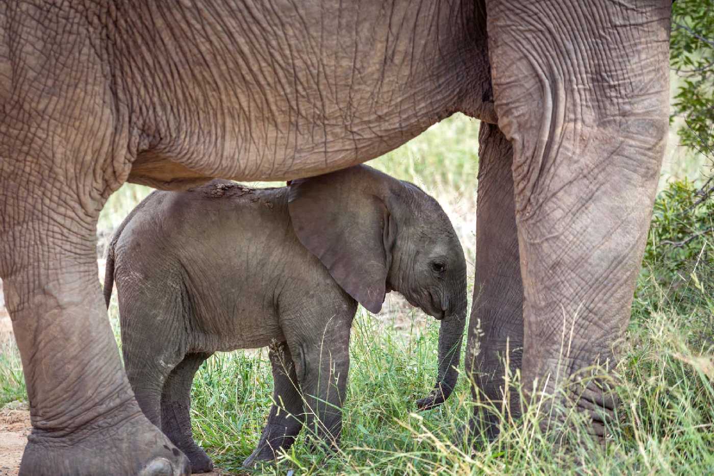 Vlies Fototapete - Elefant von Mutter geschützt 375 x 250 cm
