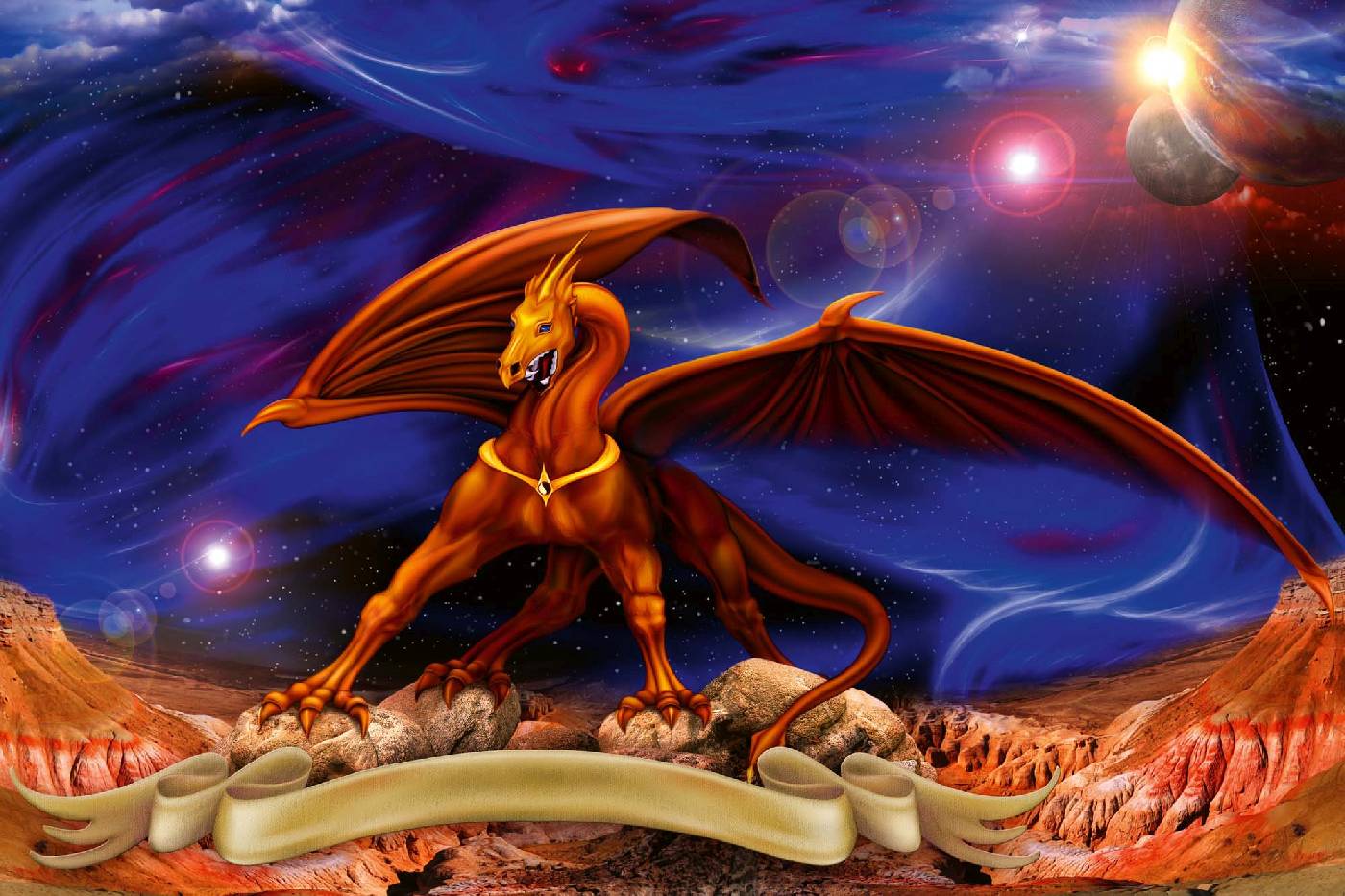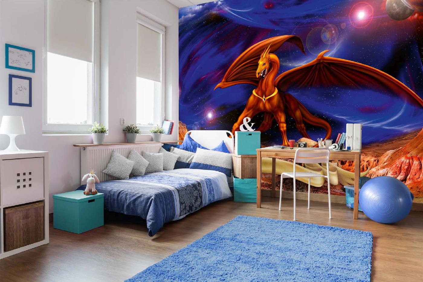 Vlies Fototapete - Fantasy Rotgold-Drache 375 x 250 cm