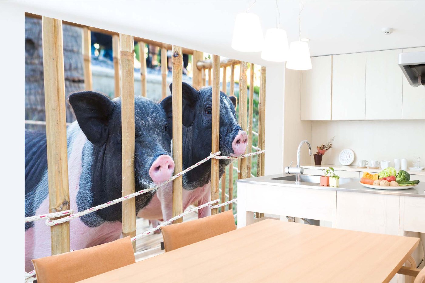 Vlies Fototapete - Ferkelzwillinge auf dem Bauernhof 375 x 250 cm