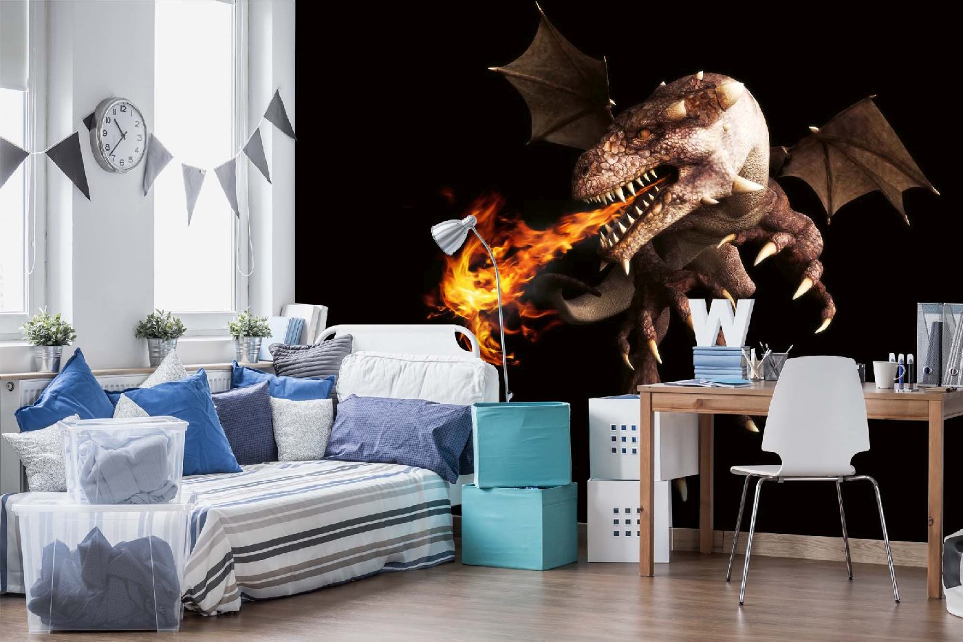 Vlies Fototapete - Feuerspeiender Drache 375 x 250 cm