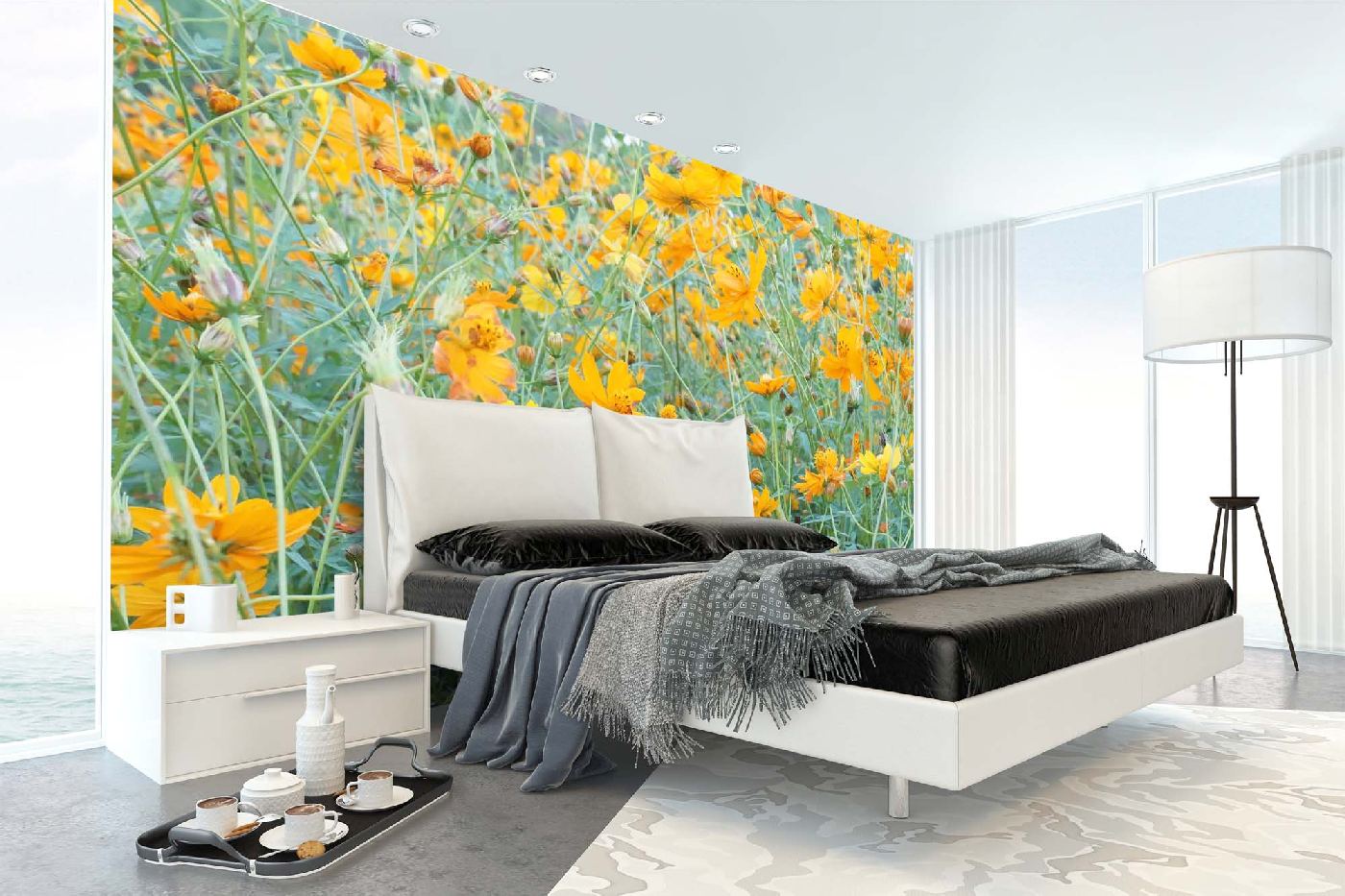 Vlies Fototapete - Gelbe Blumen 375 x 250 cm