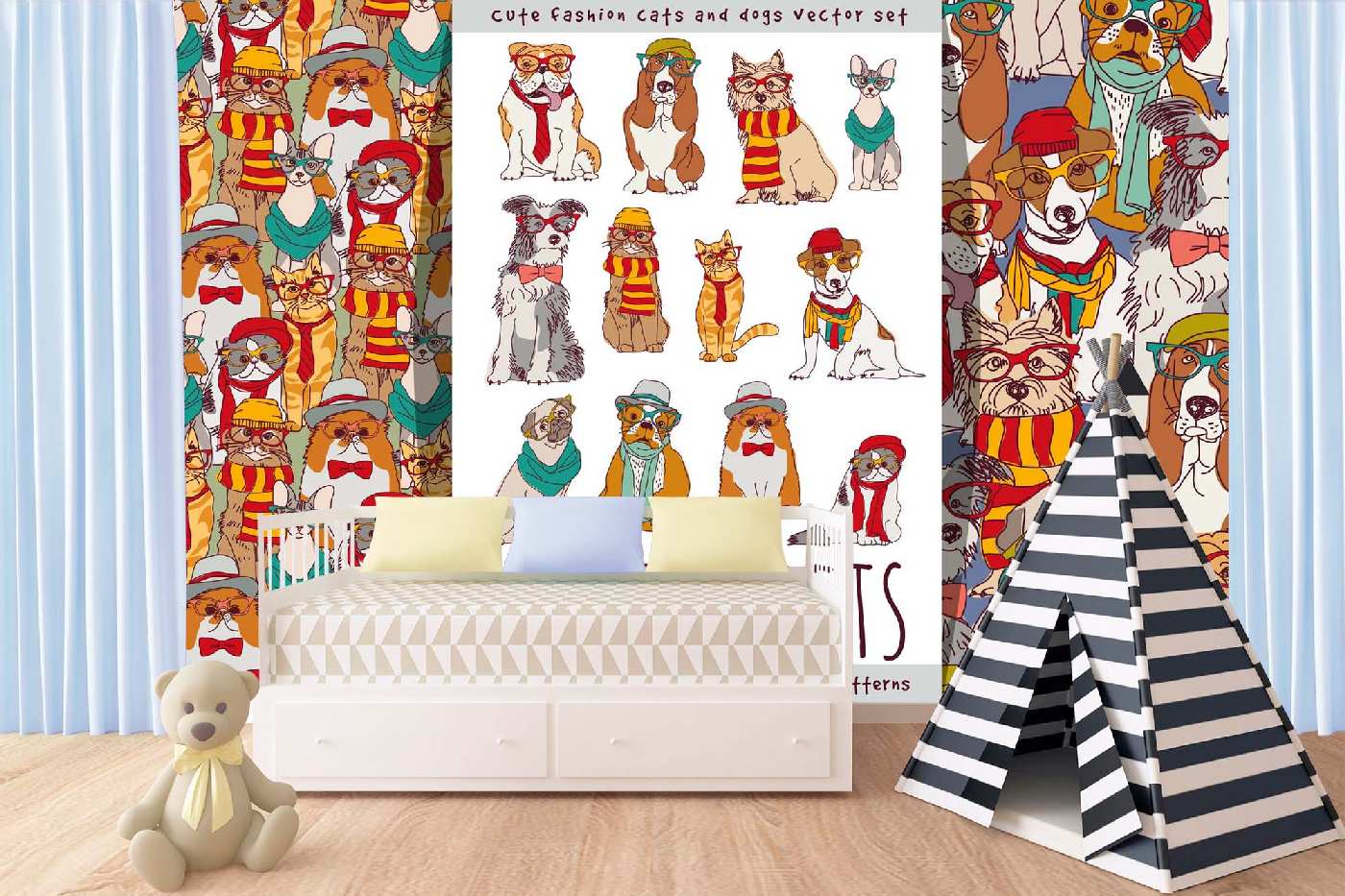 Vlies Fototapete - Hipster-Haustiere 375 x 250 cm