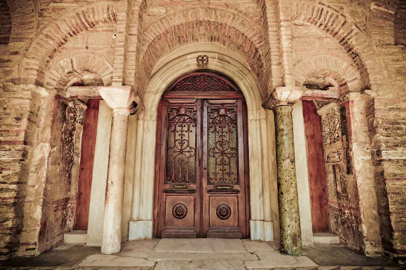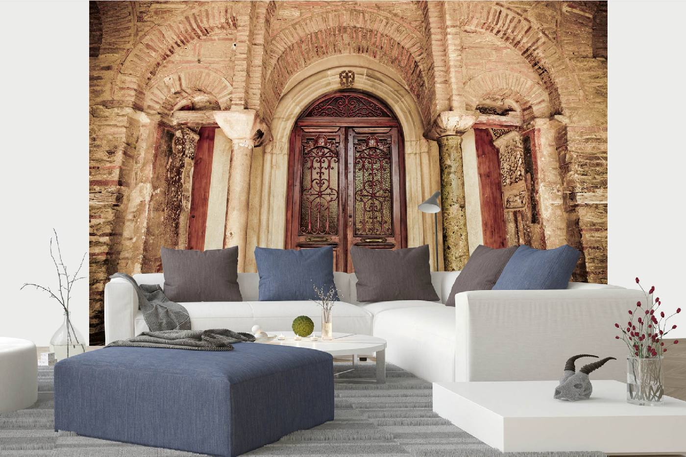 Vlies Fototapete - Holztür der alten Kirche 375 x 250 cm