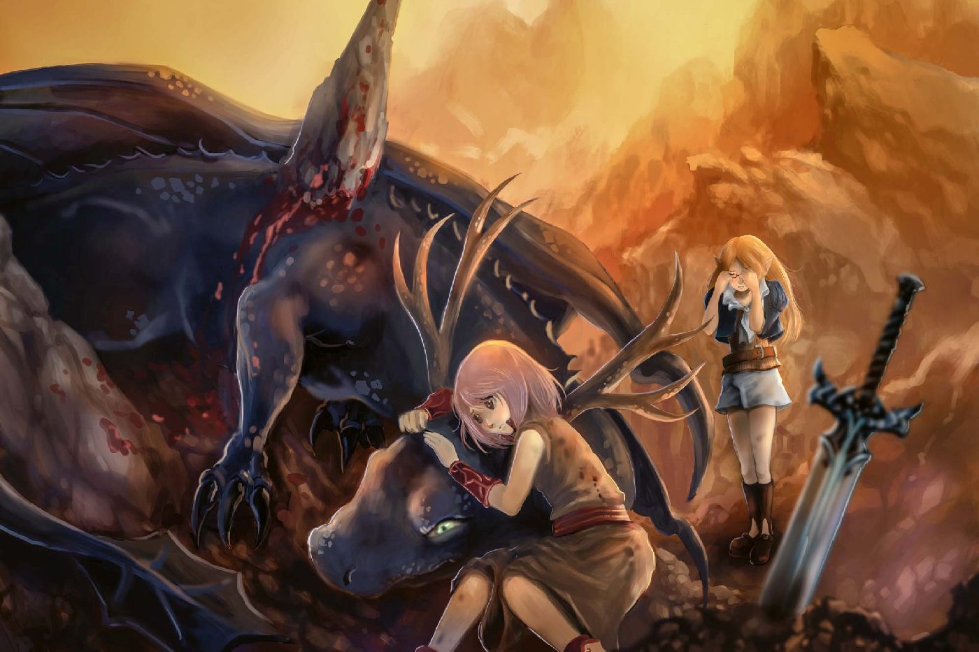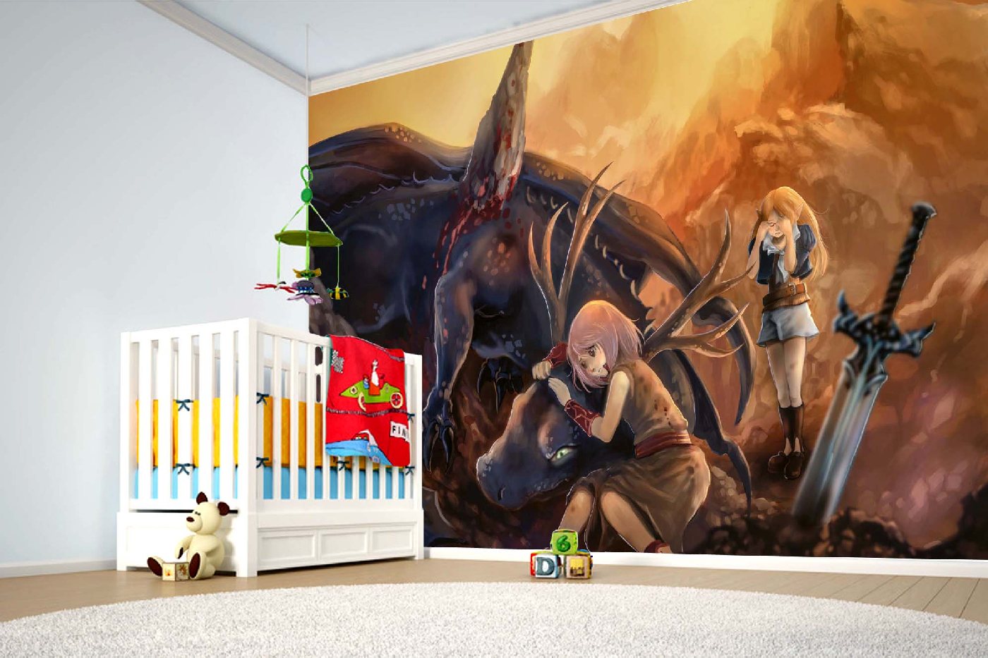 Vlies Fototapete - Japanischer Zeichentrickfilm mit Drachen 375 x 250 cm