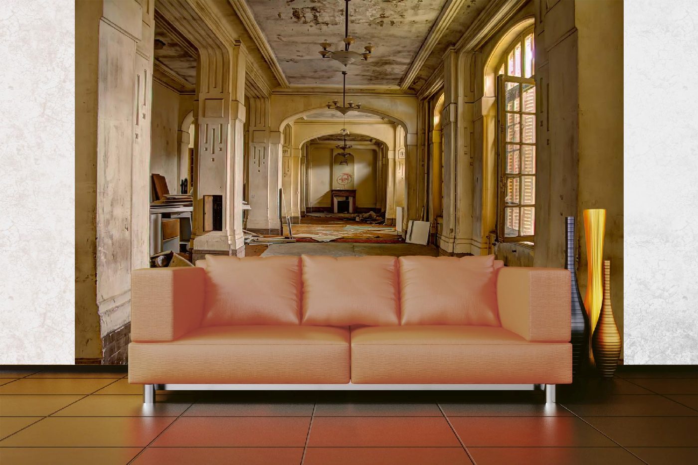 Vlies Fototapete - Kamin und alte Mauern 375 x 250 cm