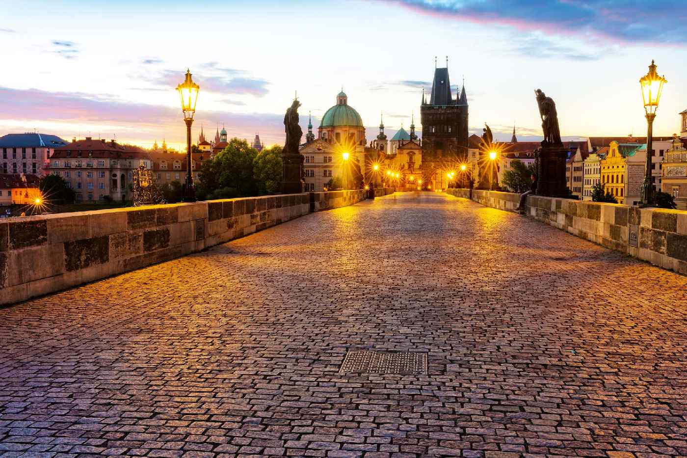 Vlies Fototapete - Karlsbrücke bei Nacht 375 x 250 cm