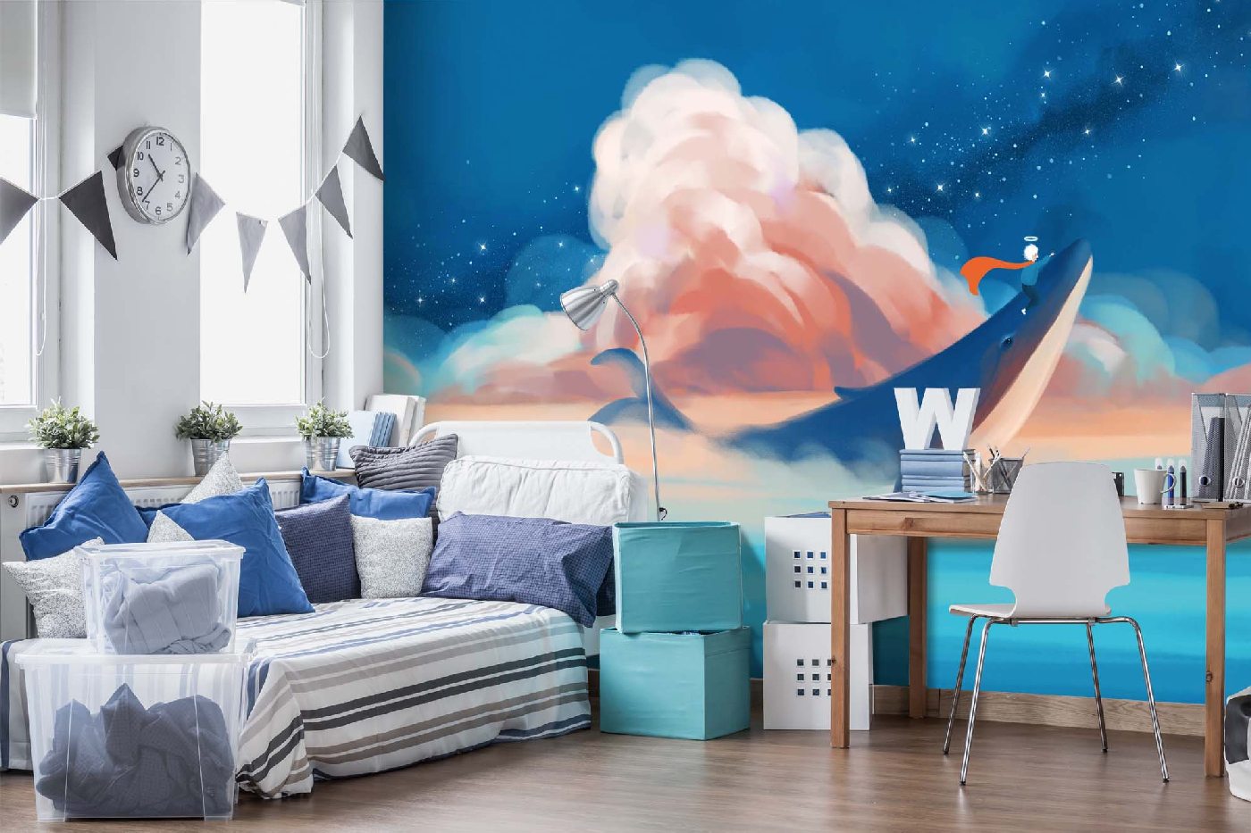 Vlies Fototapete - Kind auf einem Wal 375 x 250 cm