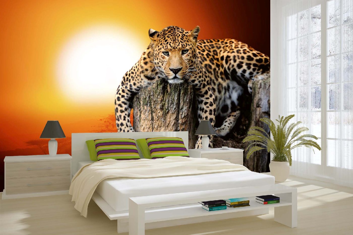 Vlies Fototapete - Leopard bei Sonnenuntergang 375 x 250 cm