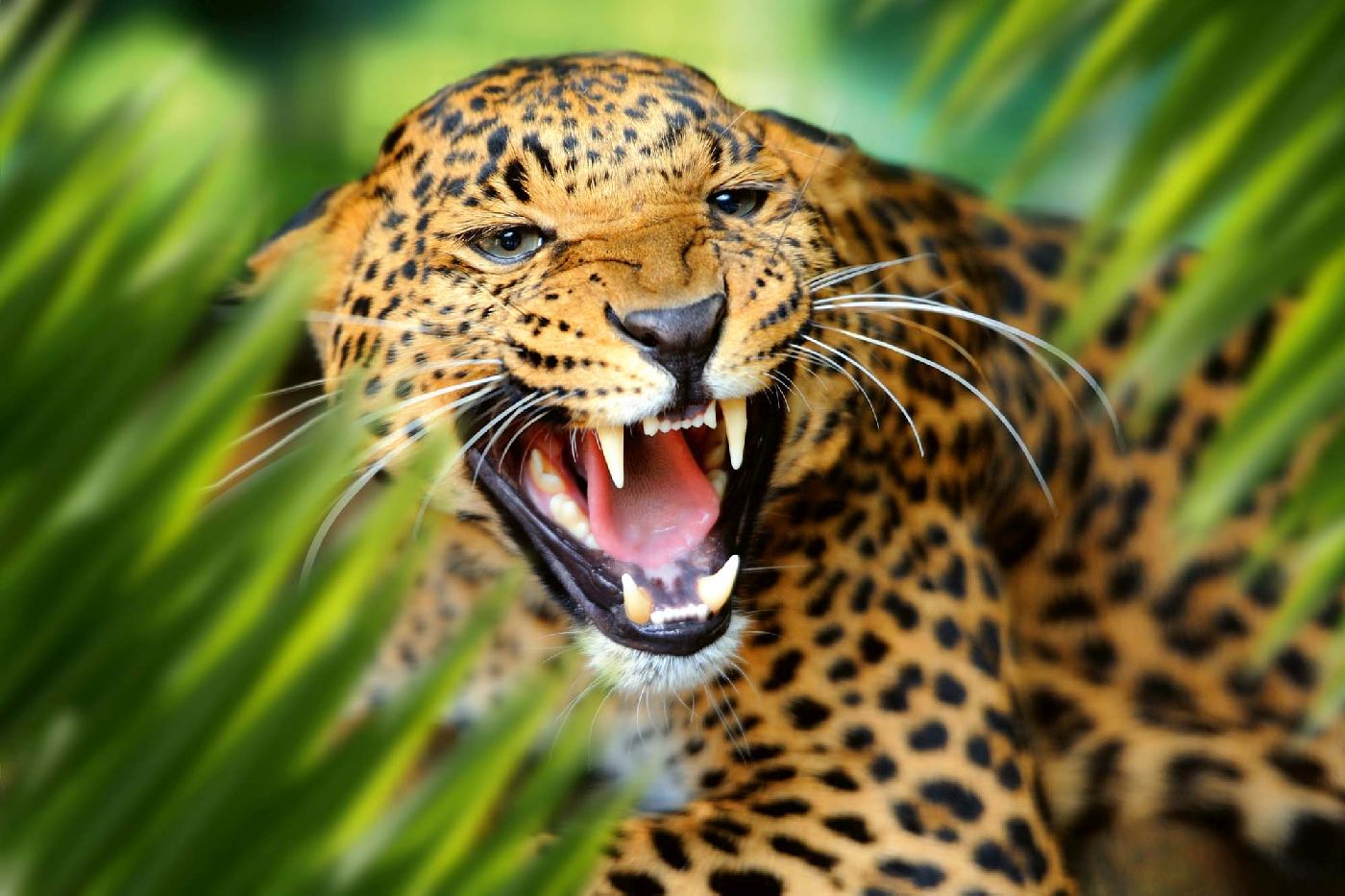 Vlies Fototapete - Leopard im Dschungel 375 x 250 cm