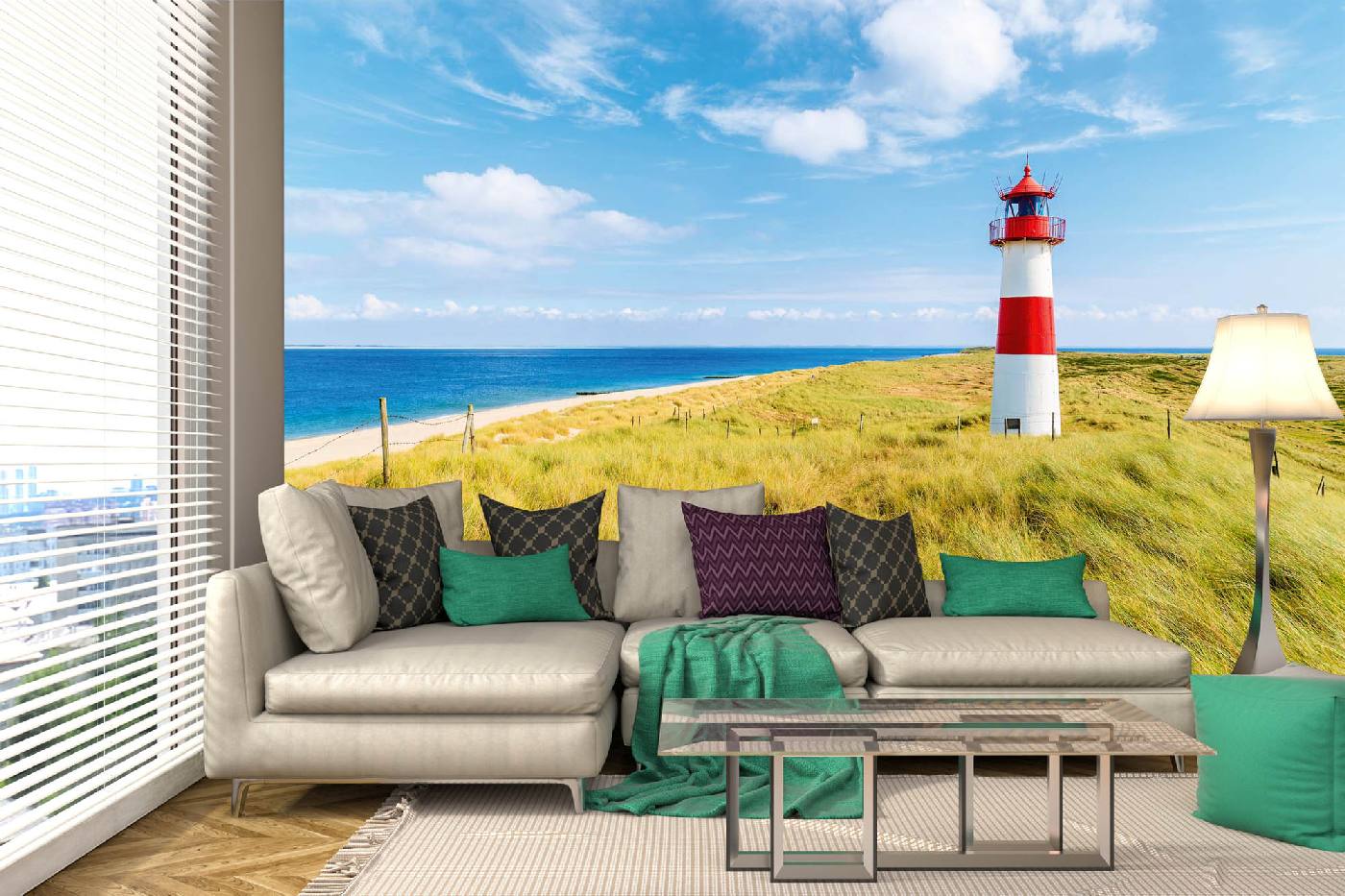 Vlies Fototapete - Leuchtturm am Strand 375 x 250 cm