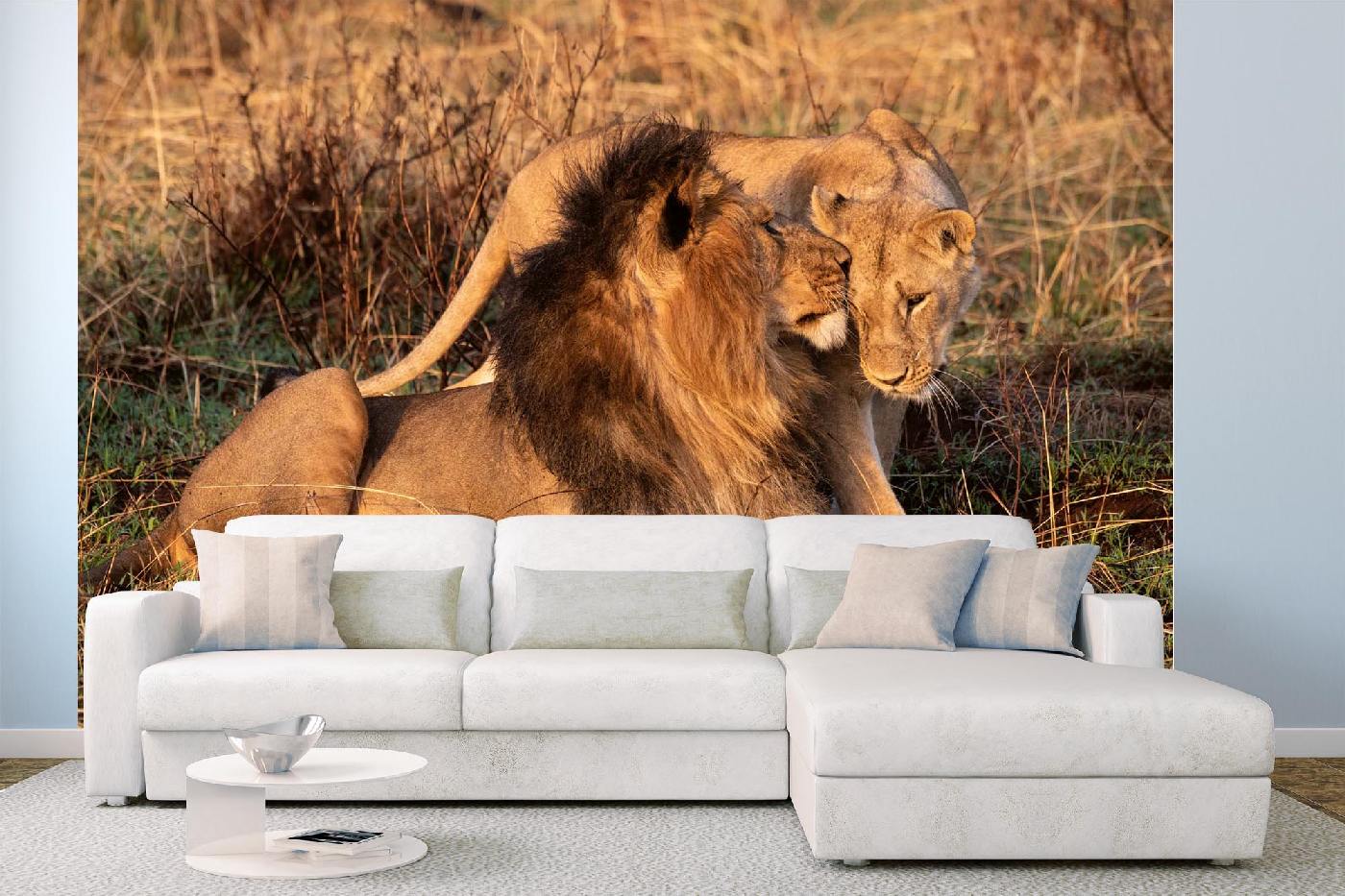 Vlies Fototapete - Löwen-Rendezvous 375 x 250 cm