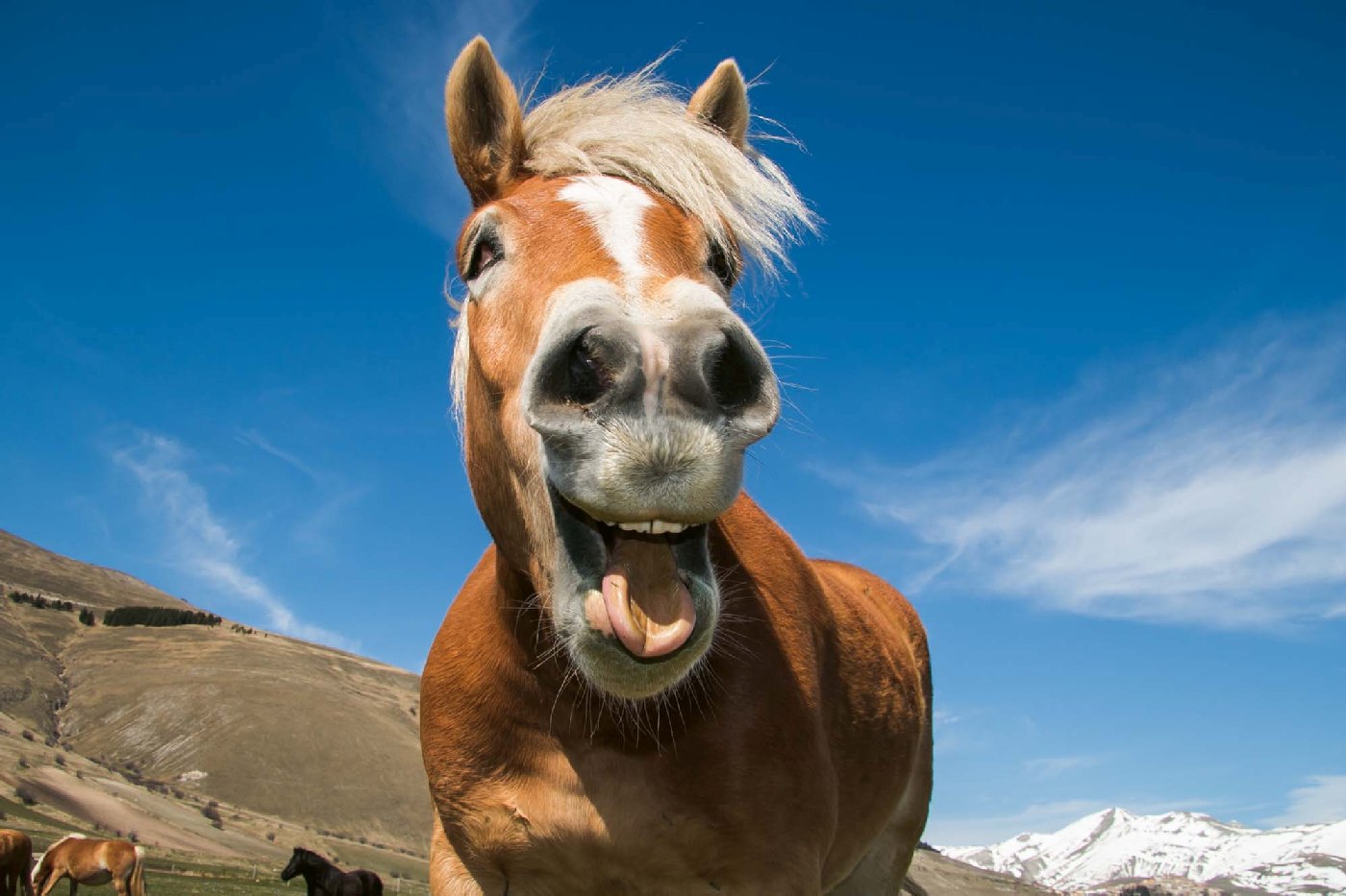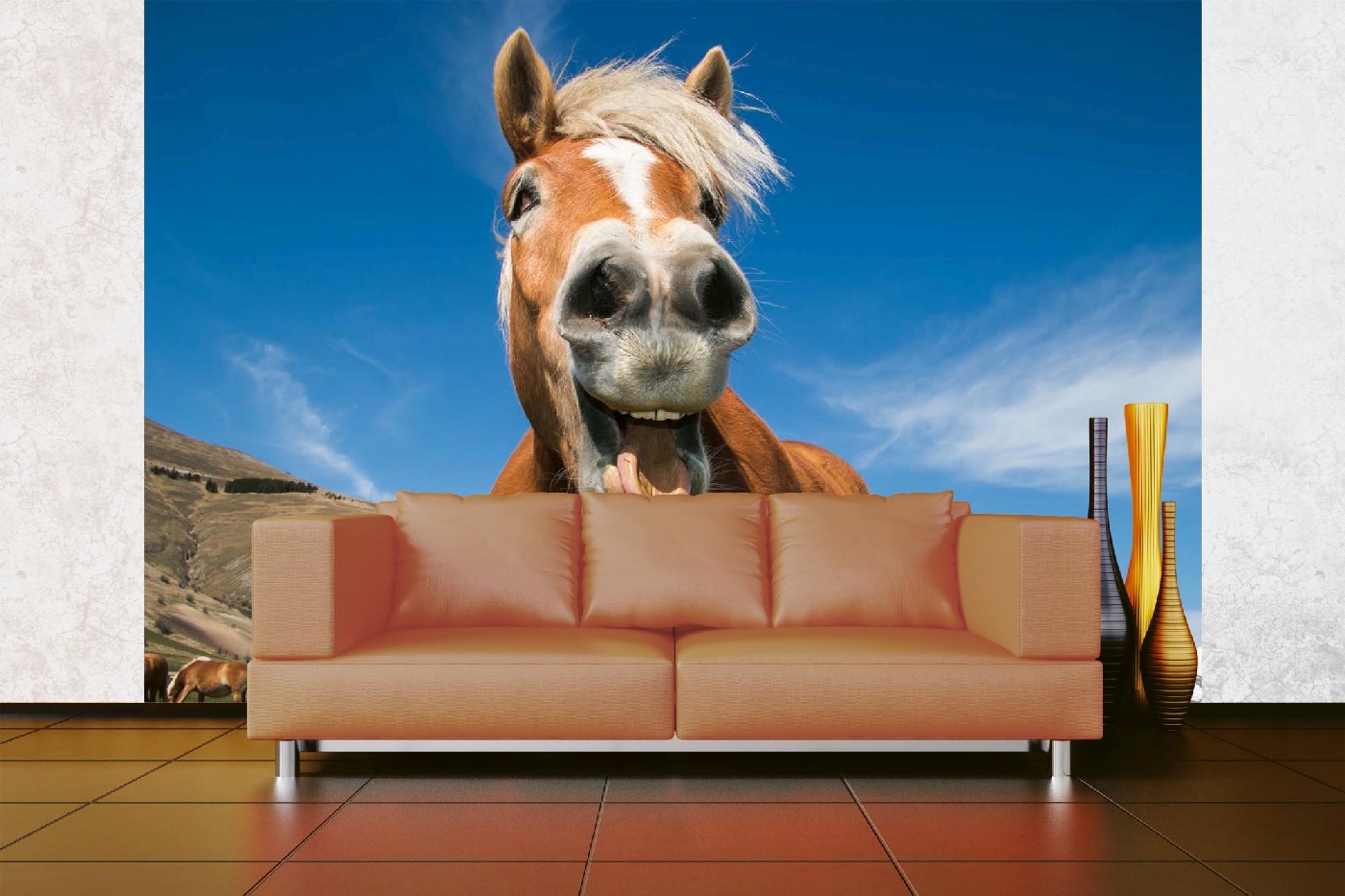 Vlies Fototapete - Lustiges Pferd 375 x 250 cm