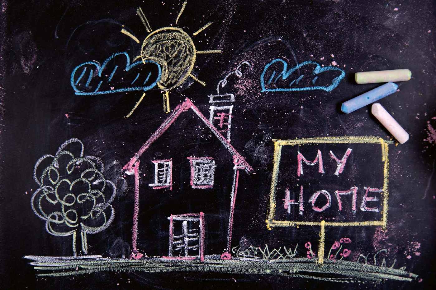Vlies Fototapete - Mit Kreide gezeichnetes Haus 375 x 250 cm
