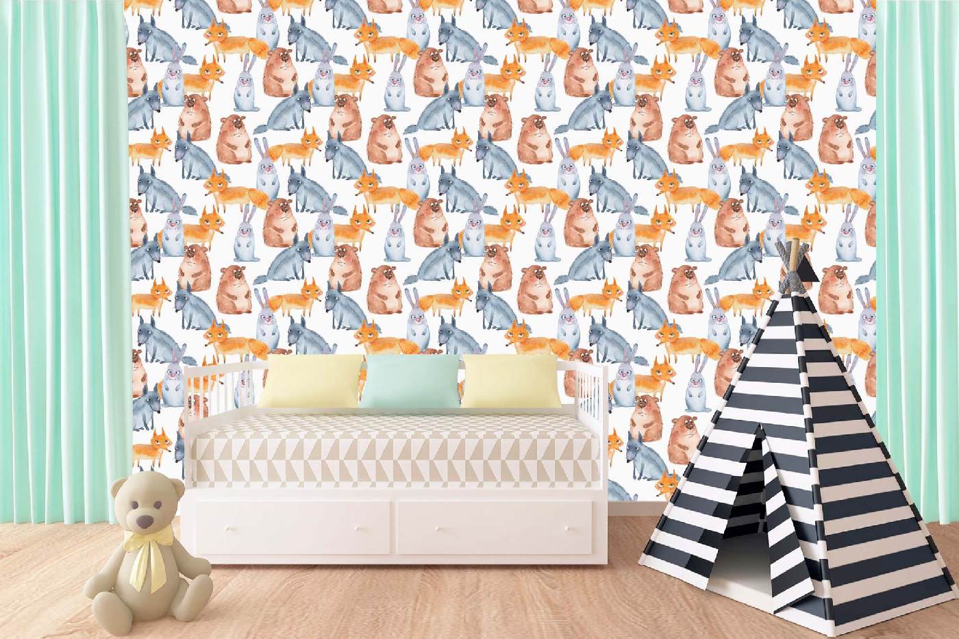Vlies Fototapete - Muster mit Waldtieren 375 x 250 cm