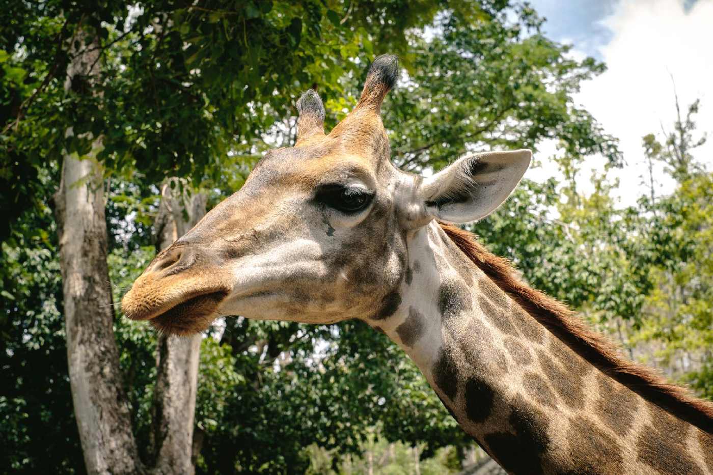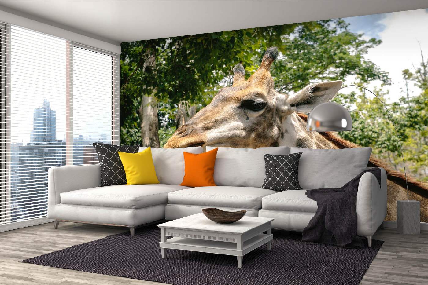 Vlies Fototapete - Nahaufnahme des Giraffenkopfes 375 x 250 cm