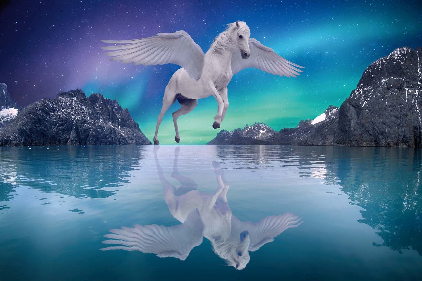 Vlies Fototapete - Pegasus und See 375 x 250 cm