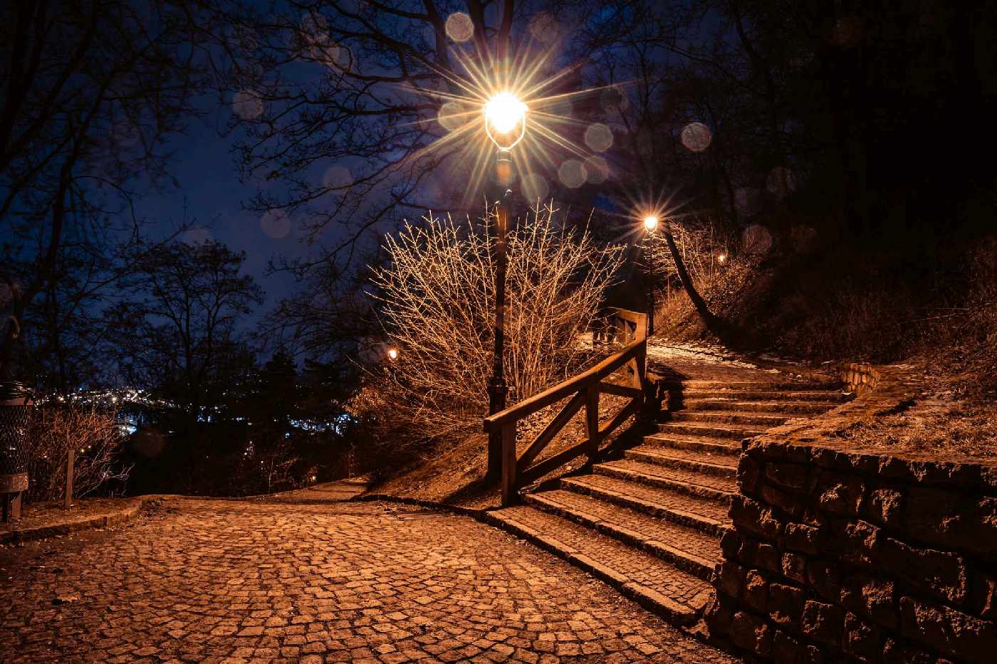 Vlies Fototapete - Petrin-Park in der Nacht 375 x 250 cm