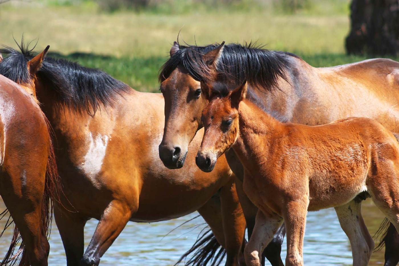 Vlies Fototapete - Pferde mit jungem Fohlen 375 x 250 cm