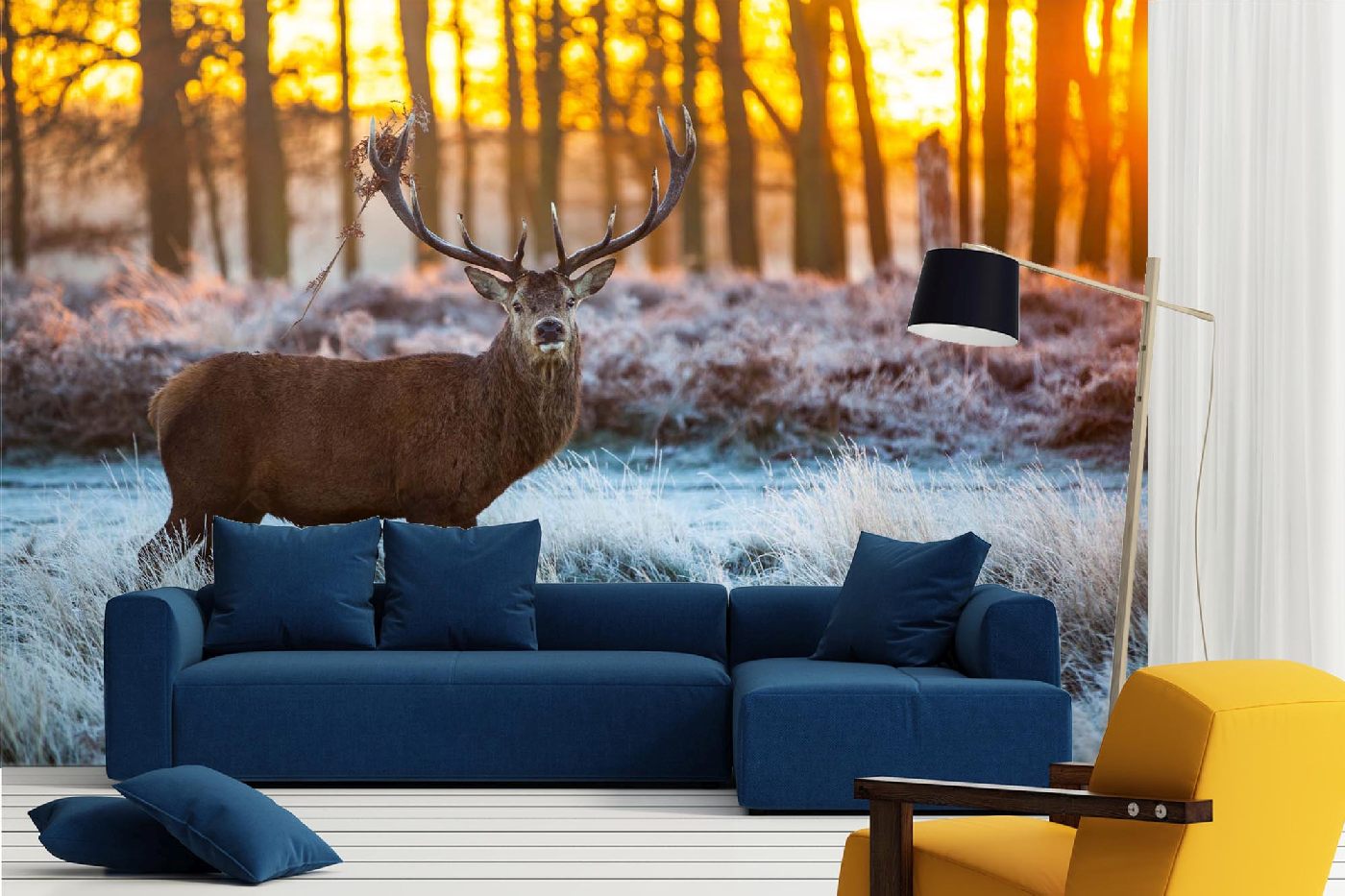 Vlies Fototapete - Rothirsch in der Morgensonne 375 x 250 cm