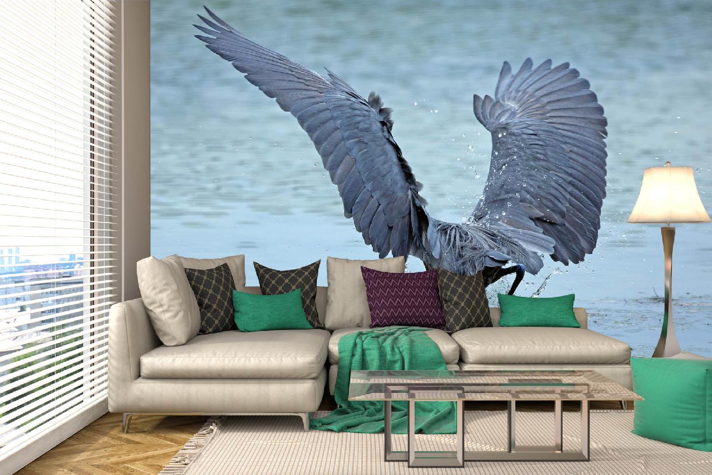 Vlies Fototapete - Rötlicher Reiher taucht 375 x 250 cm