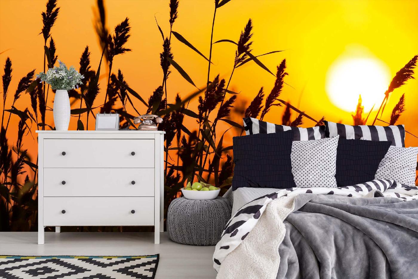 Vlies Fototapete - Schilf im Sonnenuntergang 375 x 250 cm