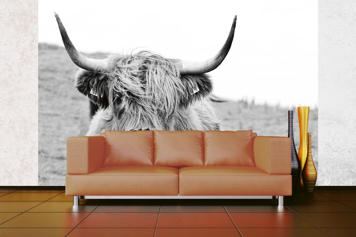 Vlies Fototapete - Schottische Kuh 375 x 250 cm