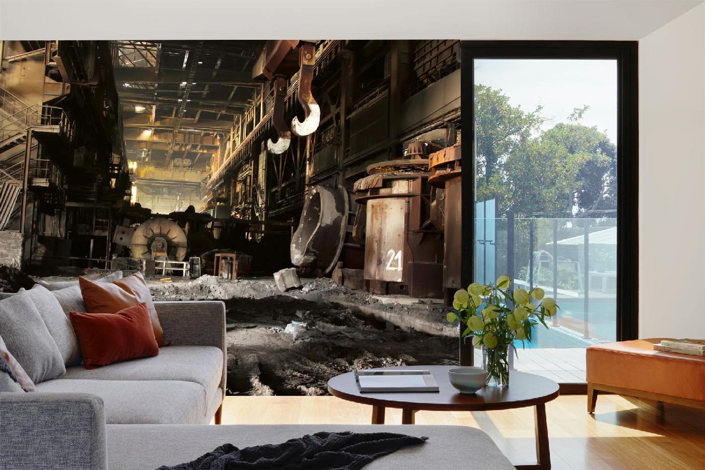 Vlies Fototapete - Verlassene Stahlfabrik 375 x 250 cm