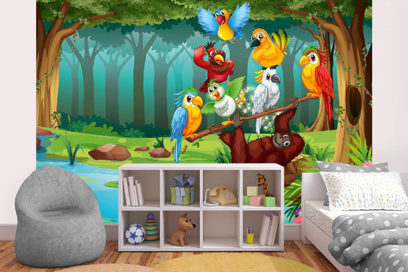 Vlies Fototapete - Wilde Tiere im Wald 375 x 250 cm