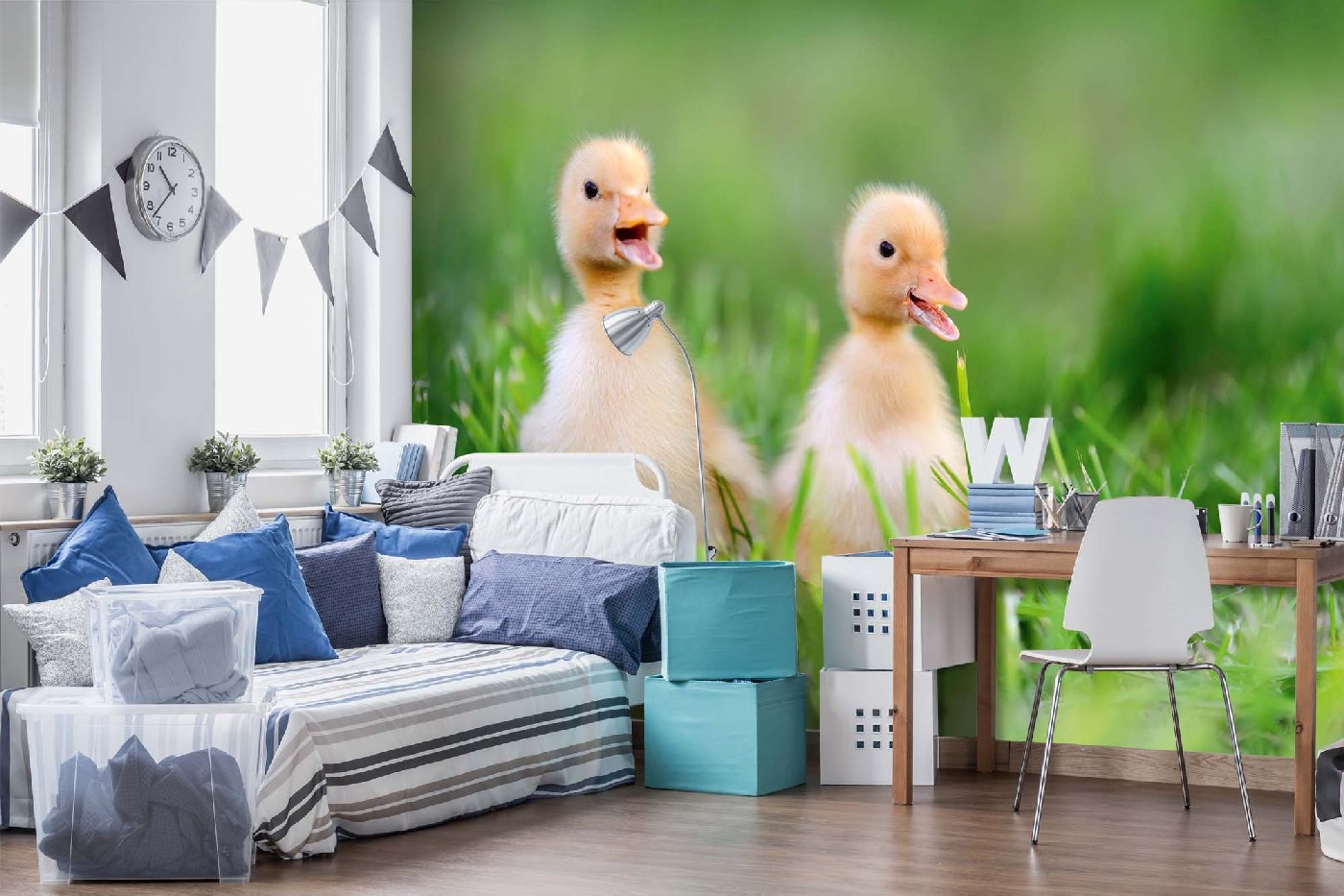 Vlies Fototapete - Zwei kleine gelbe Entlein 375 x 250 cm