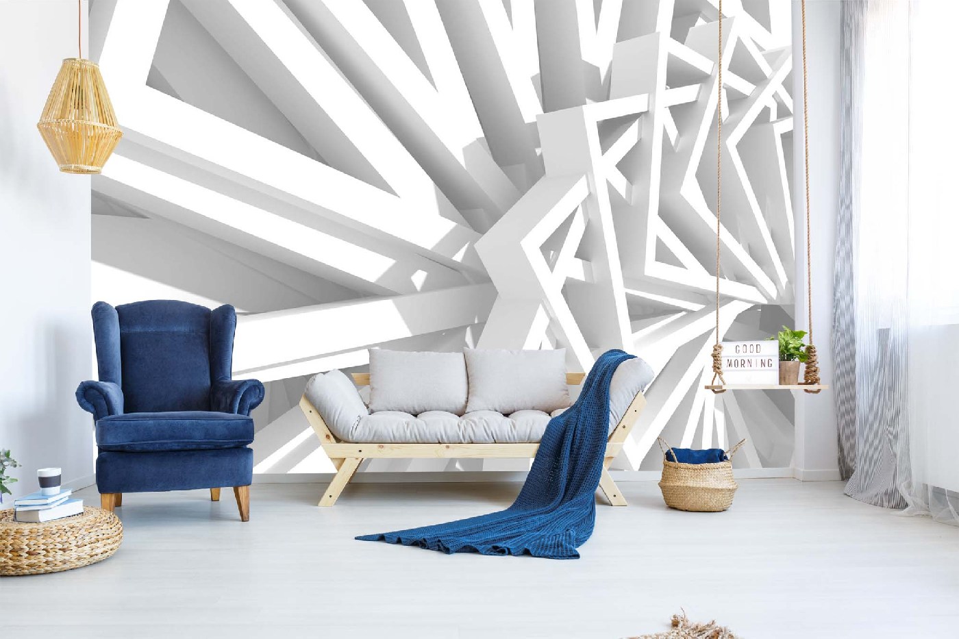 Vlies Fototapete - Abstraktes weißes geometrisches Muster 375 x 250 cm