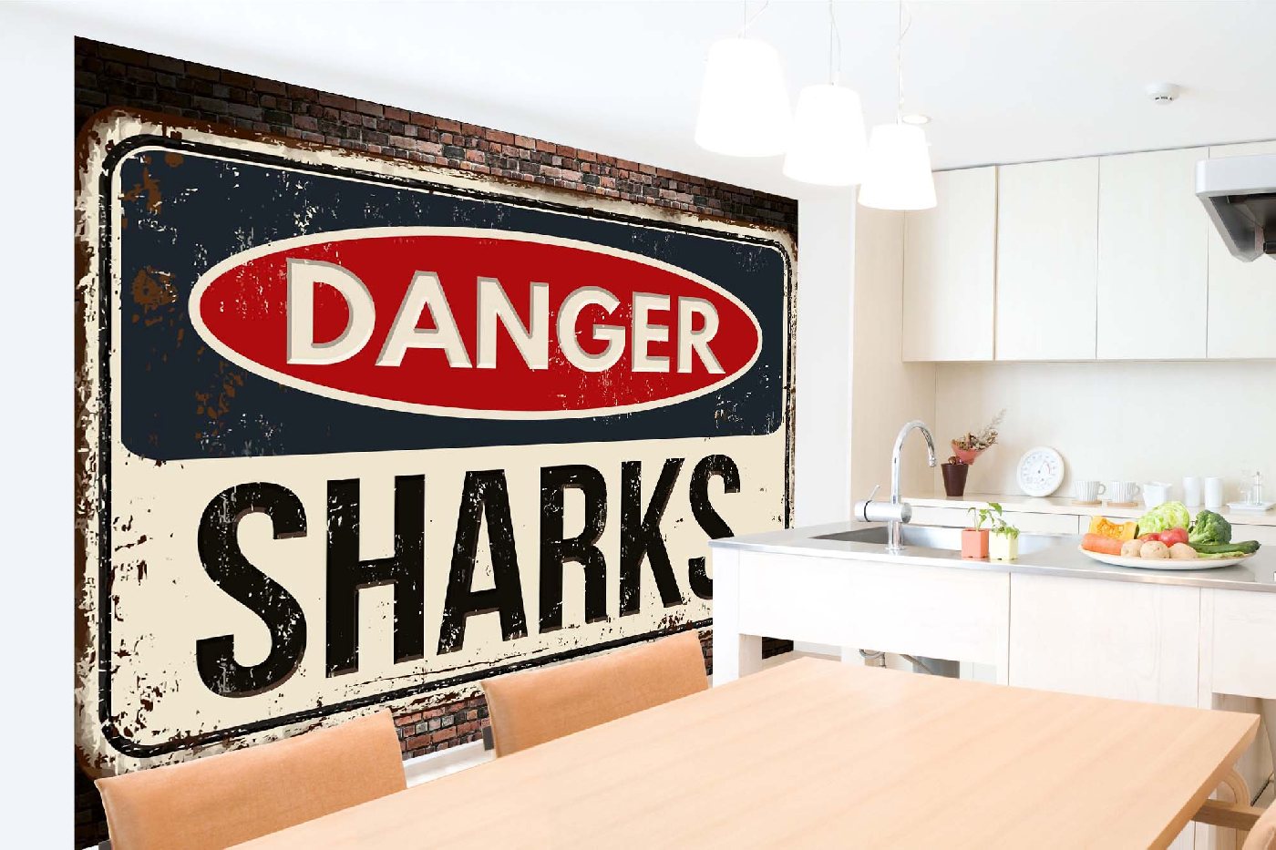 Vlies Fototapete - Achtung Haie 375 x 250 cm