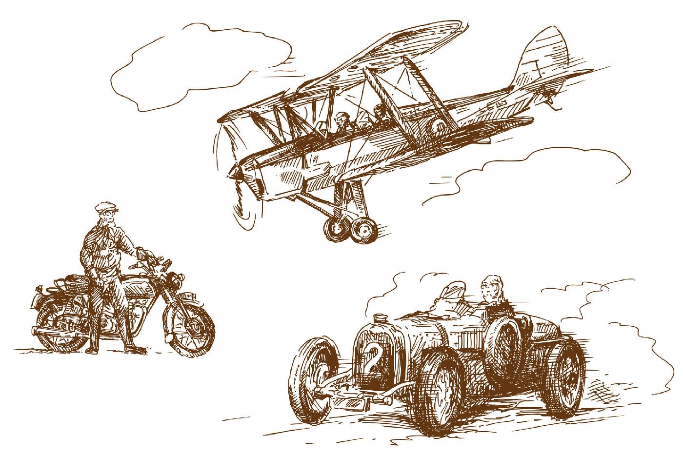 Vlies Fototapete - Alte Fahrzeuge Zeichnung 375 x 250 cm