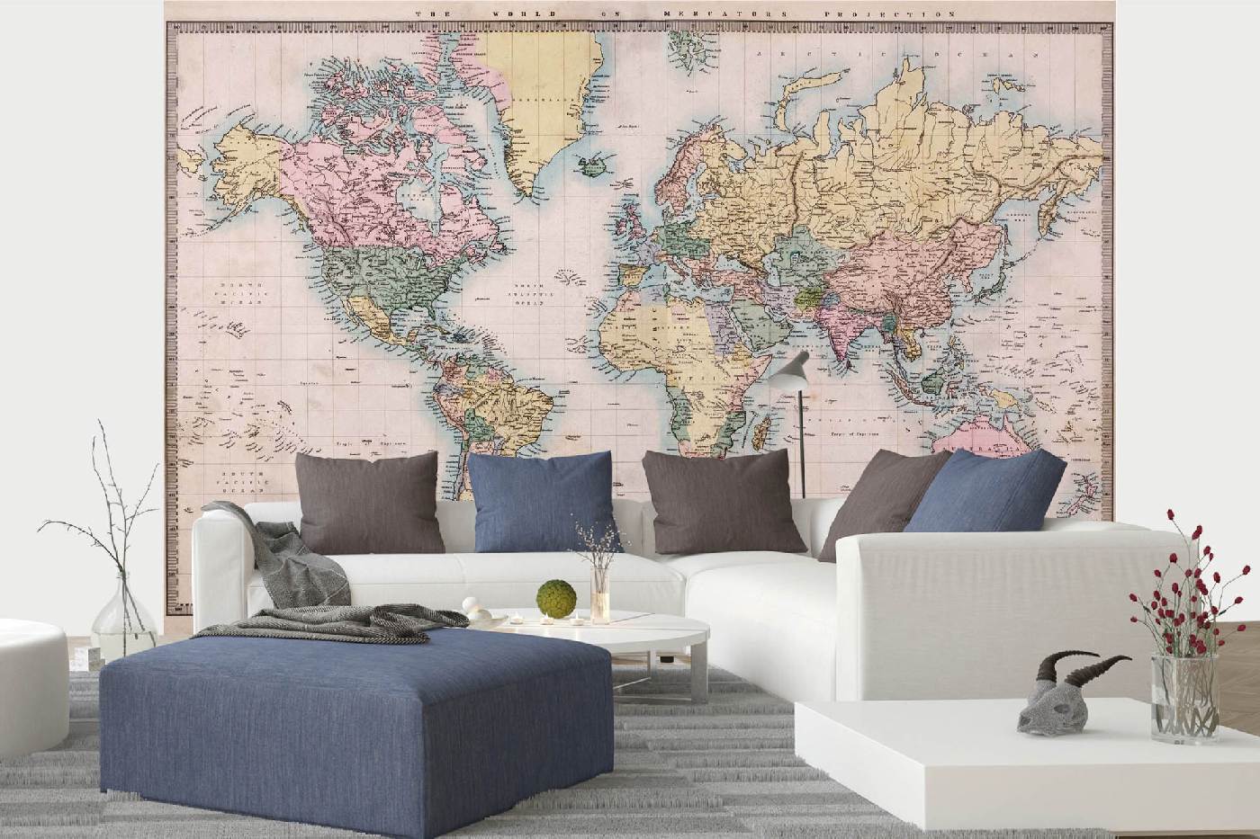 Vlies Fototapete - Alte farbige Karte 375 x 250 cm