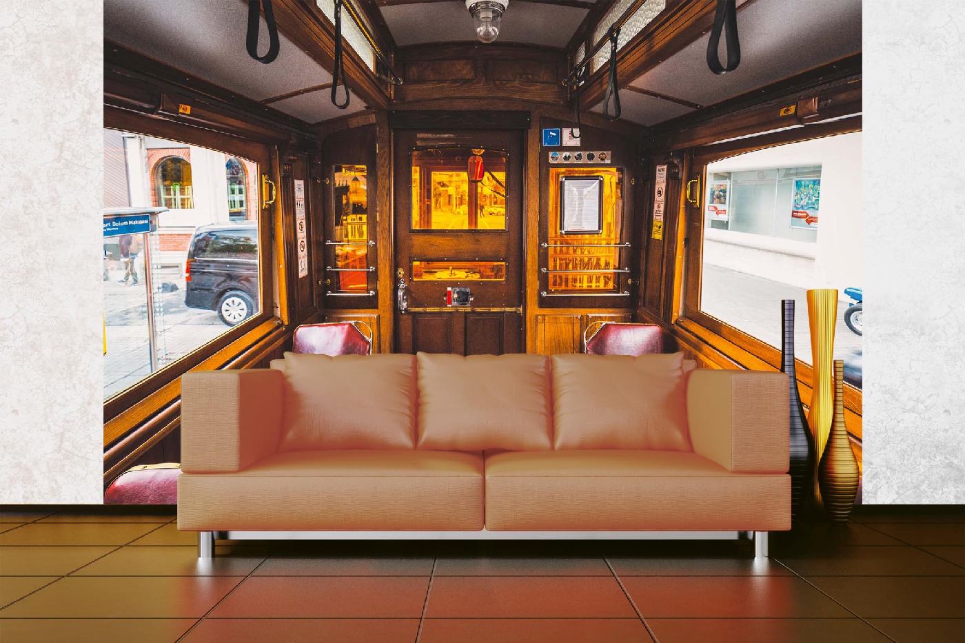Vlies Fototapete - Alte rote Straßenbahn 375 x 250 cm