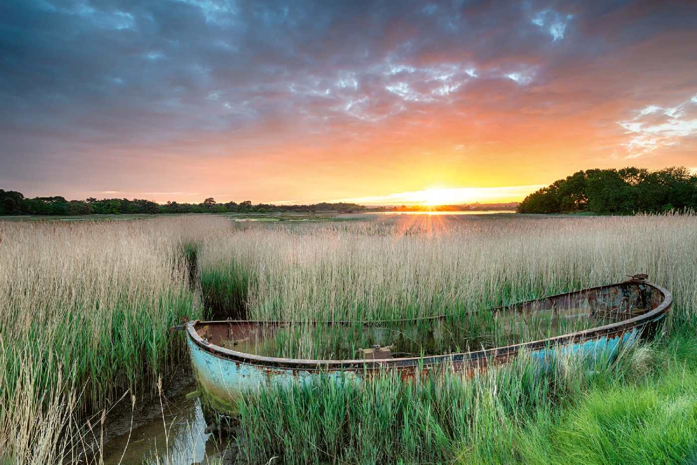Vlies Fototapete - Altes Boot im Hafen 375 x 250 cm