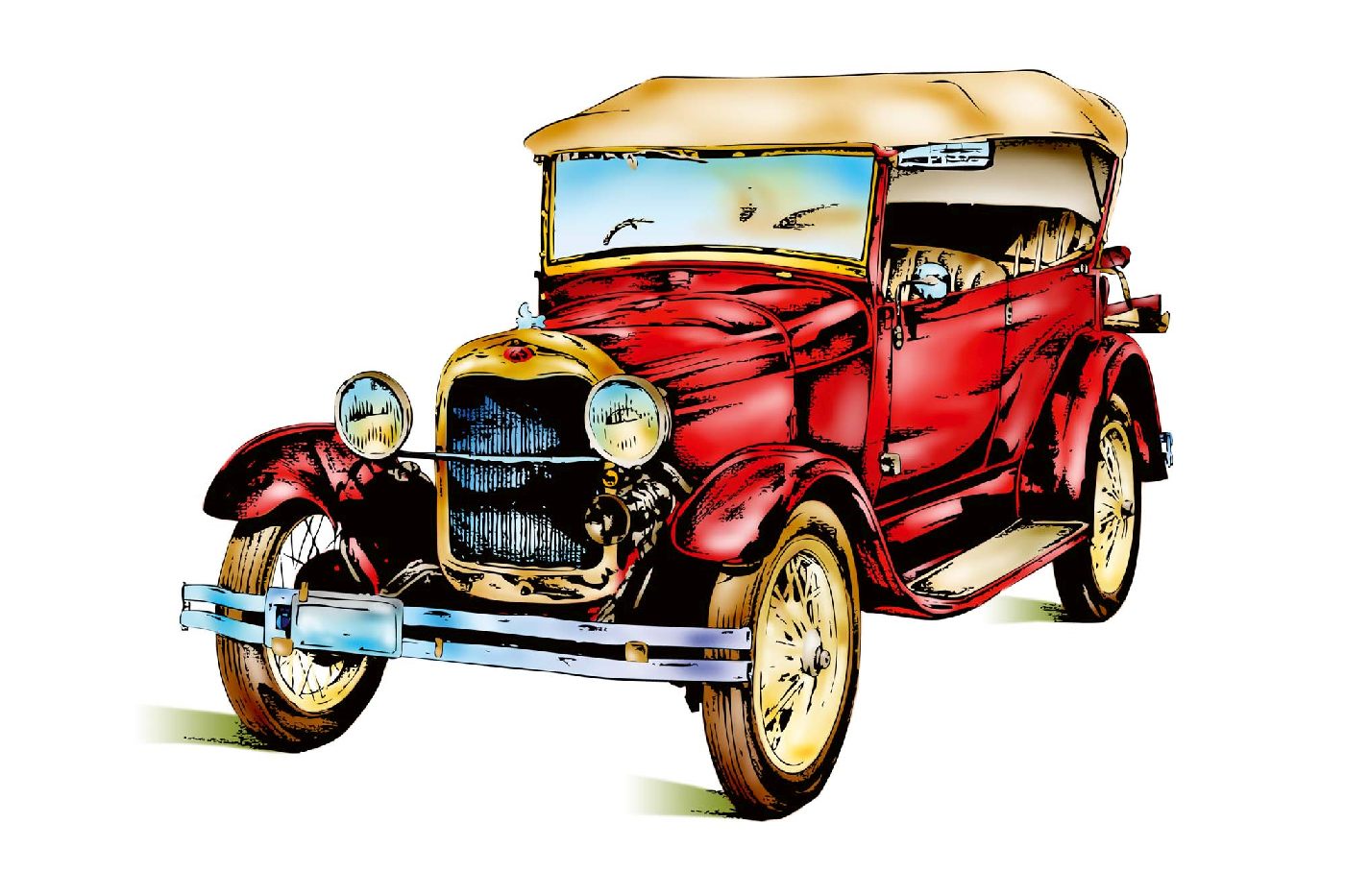 Vlies Fototapete - Altes rotes Auto 375 x 250 cm